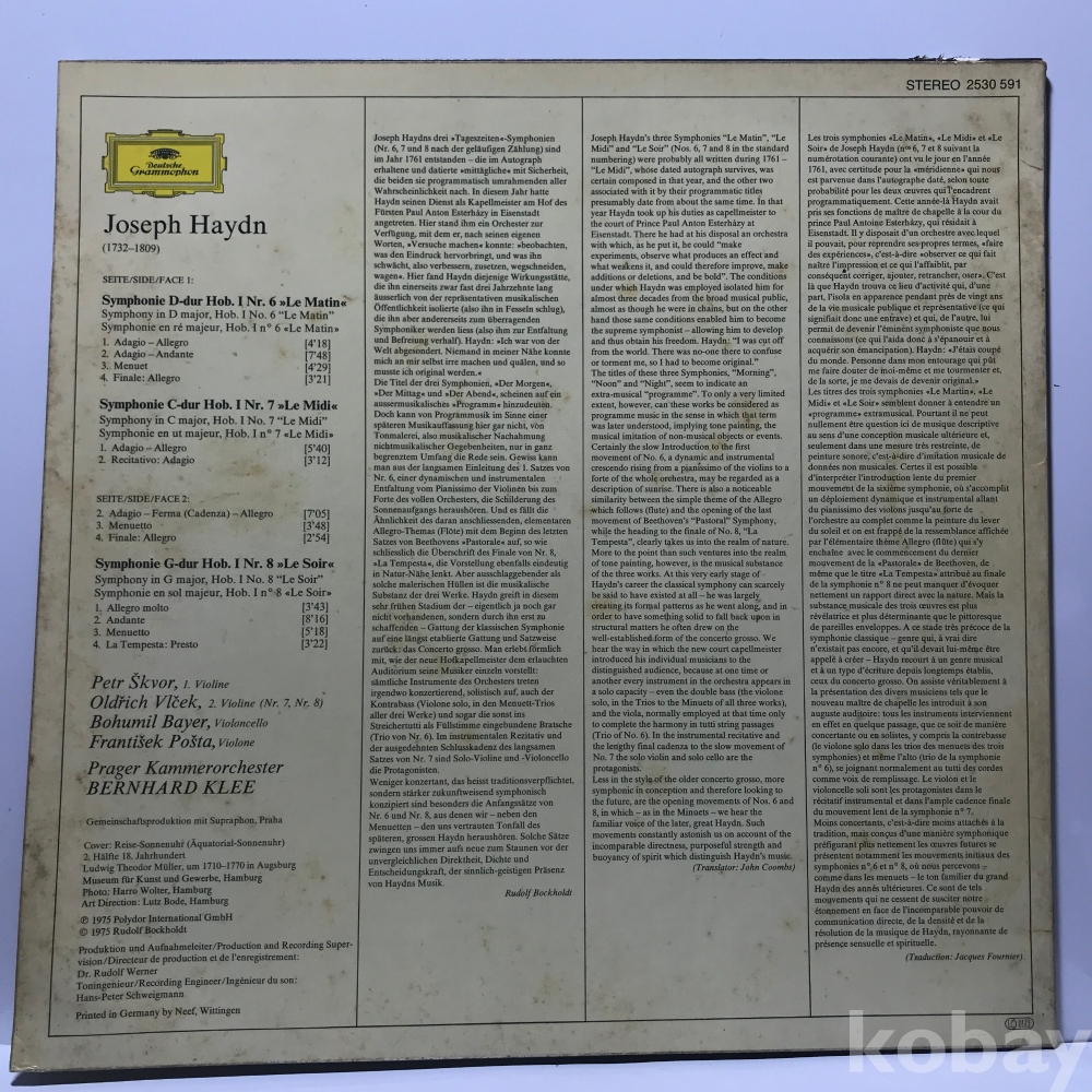 LP 29,200-132 Haydn Symphonien Le Matin Le Midi Le Soir_Bernhard Klee . 수입 독일 자켓 EX 알판 EX+