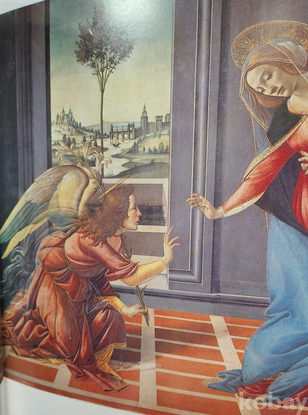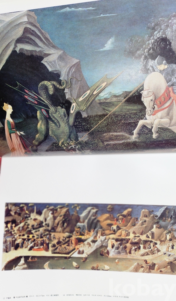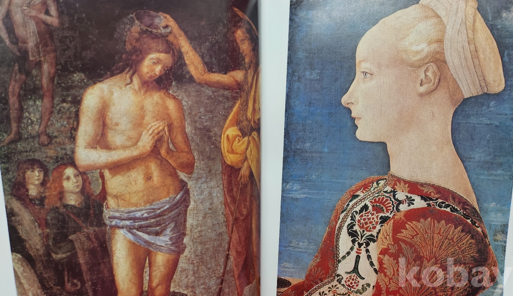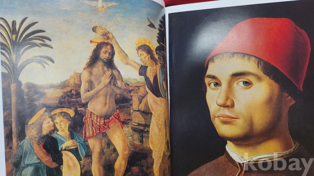 치마부에.지오토.마르티니,피에토로로렌체티.암브레지오 로렌체티.프라안제리코.우첼로.스타르니나,로렌쵸모나코.야코포벨리니.마사치오.도메니코 베네치아노.발도비네티.피에로델라,프란제스카,젠틸레벨리니.지오반나벨리니,만다냐.베로키오,안토넬로다 메시나,폐루지노.판투리지오,폴라이우올로.보티첼리.키를란다이오.레오나르도다빈치.프라필리포리피.미켄란젤로, 등의 작품이 수록된 칼러판 화보책입니다,