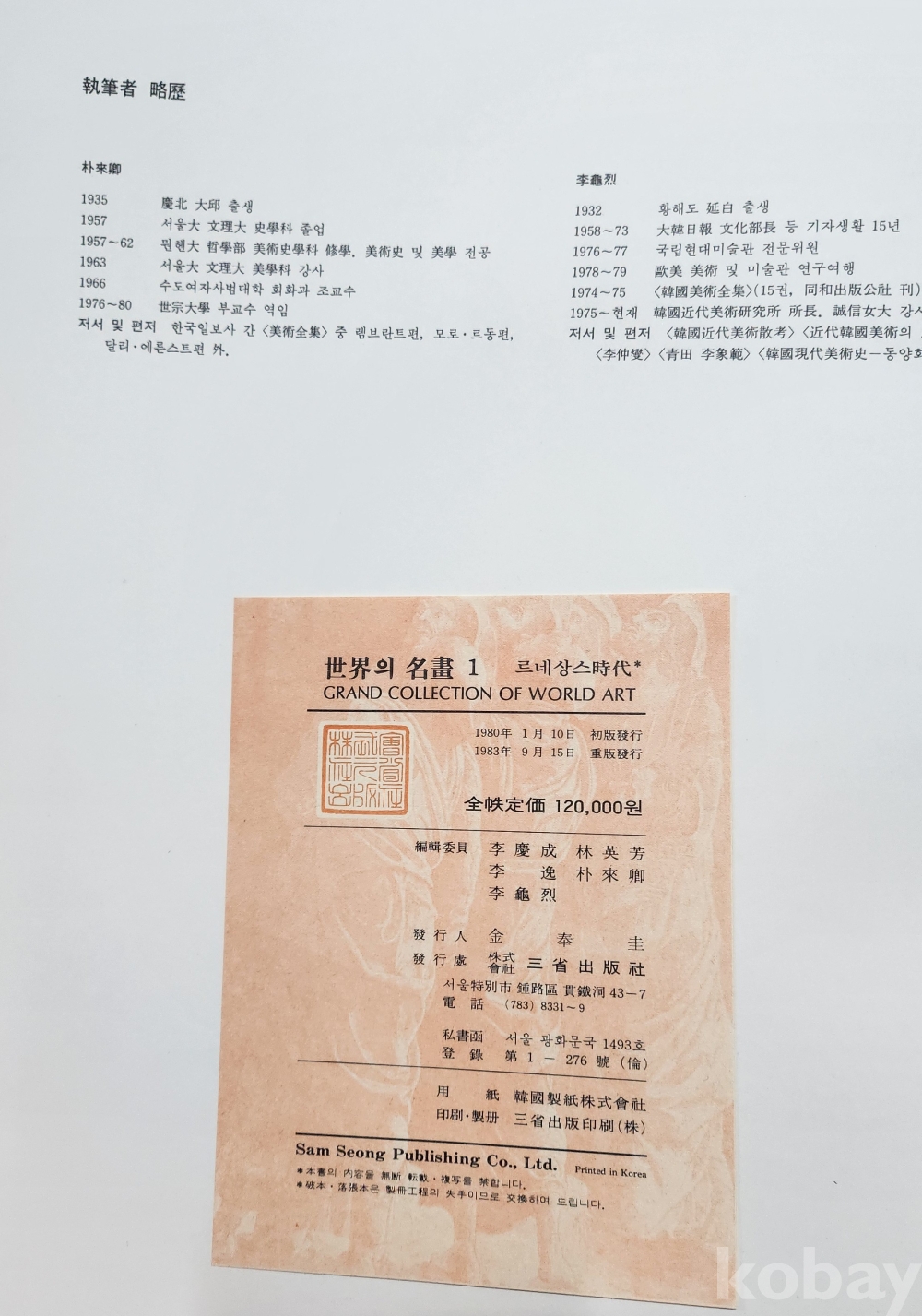 1983년 발행된 세계의 명화 르네상스 시대 편으로 크기가 큰 칼러판 화보책입니다,