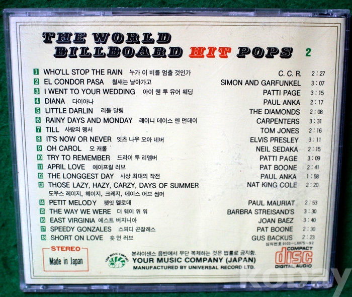 (CD) Billboard hit pops Vol.2 - Who'll stop the rain / El condor pasa...