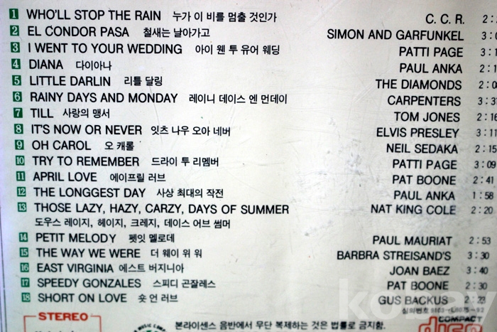 수록 곡 목은 사진을 참조하시기 바랍니다