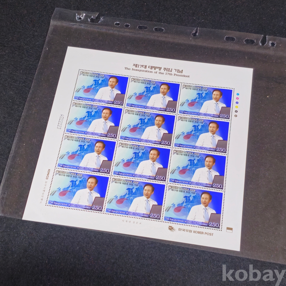 (천원경매) (((대통령자료/우표/쉬트))) 2008년 제17대 이명박 대통령 취임기념 우표전지 (미사용)
