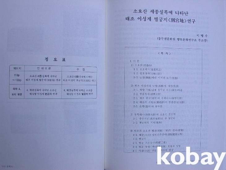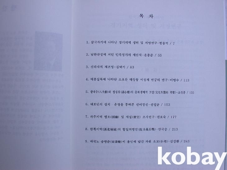 본문은 큰 활자로 9편의 논문이 수록되었다. 지명연구, 남한산성, 소요산 이성계 변궁리, 팔대수/청심루, 대보단, 항일의병, 송병준과 용인 등의 주제가 다뤄졌다.
