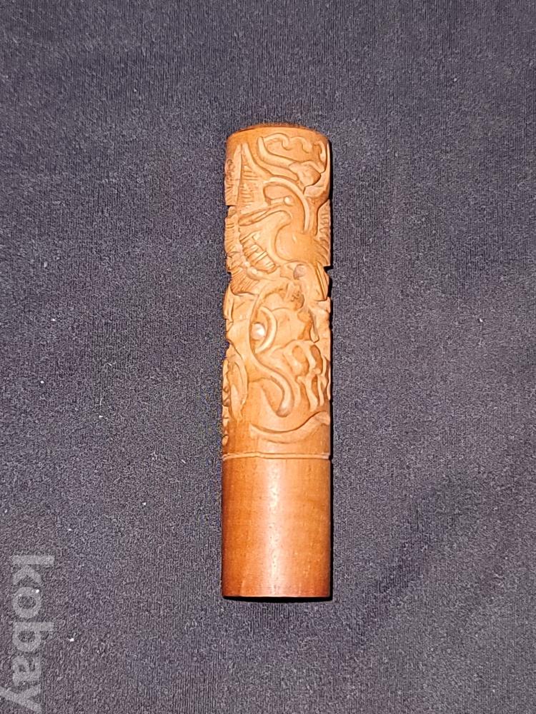 빈티지 멋스러운 그림이 조각된 나무 도장입니다.