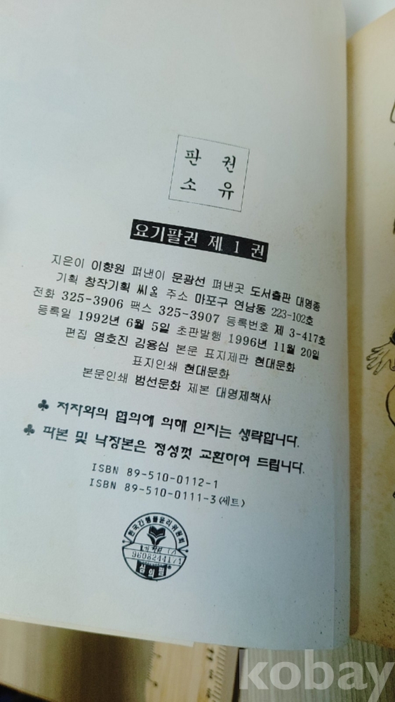 예전 만화왕국 연재작 이향원 작 요기팔권1편 만화책입니다