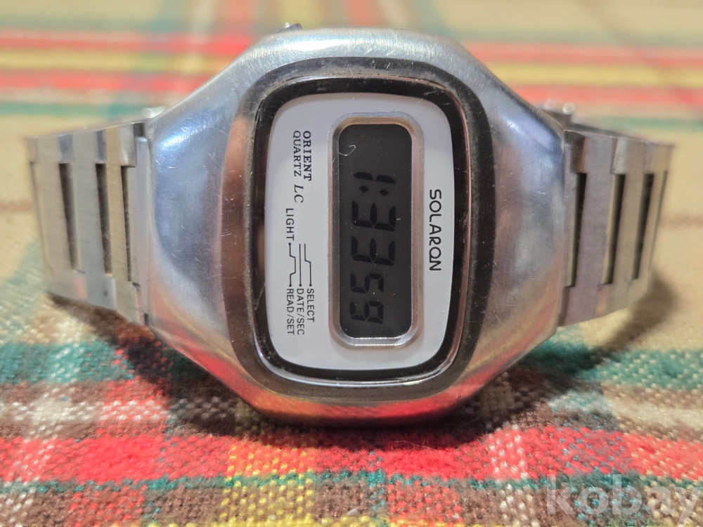 오리엔트의 극희귀 LED시계 빈티지 오리엔트 솔라론 QUARTZ LC디지탈 손목시계.