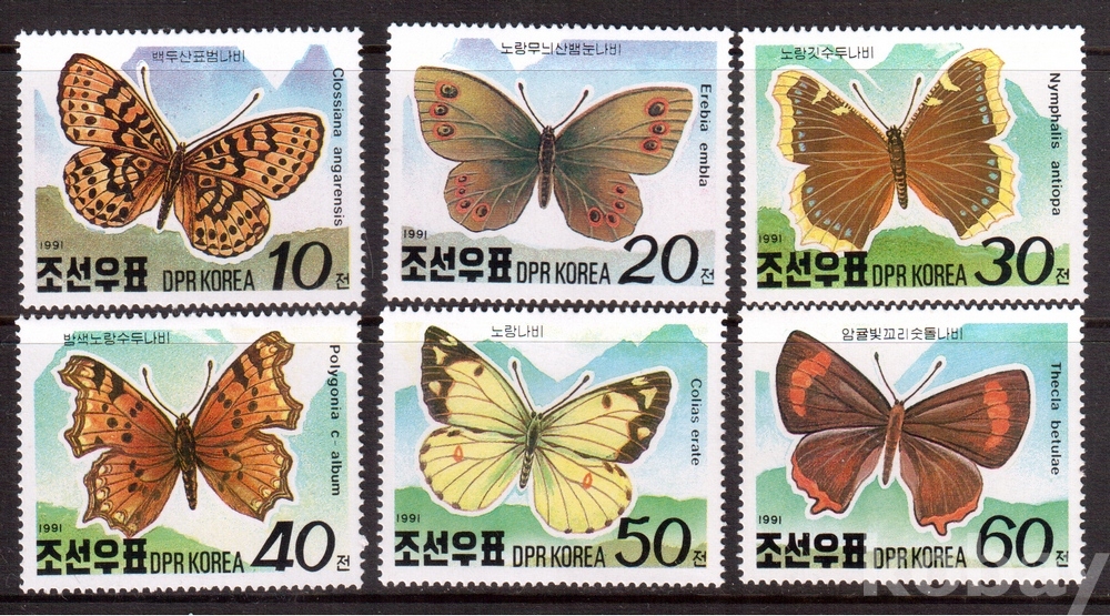 (곤충) 북한 1991.2.20 고산나비 6완 MNH