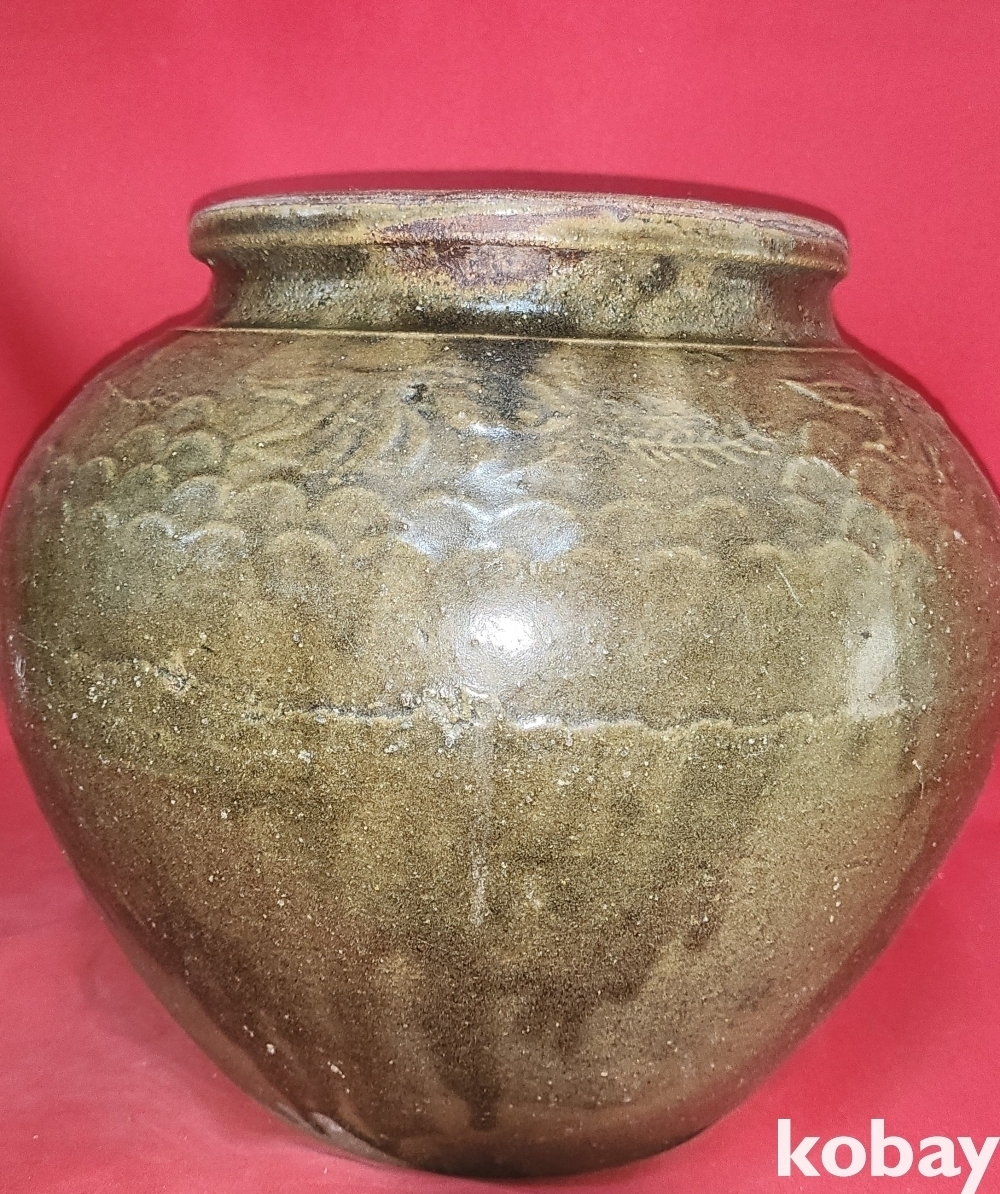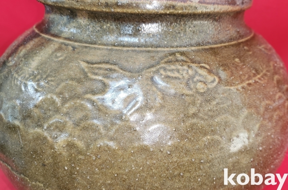 구한말 연대 청자 열대어 문양 준(樽)입니다,