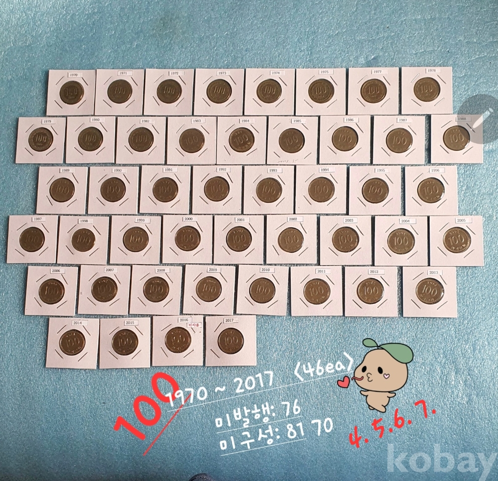★ 현행주화 100주 풀 사용제 세트 < 1970 - 2017 >