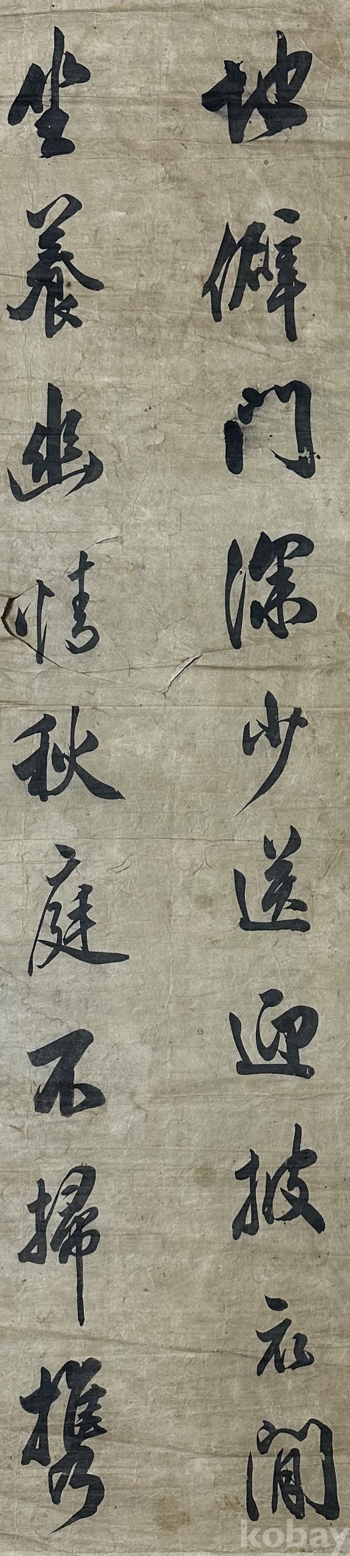 본 작품은 깊은 정원과 고요한 분위기를 묘사한 문구를 세로 구도로 담아낸 서예 작품으로, 차분하고 여유로운 감성을 잘 전달하고 있습니다. 담담한 필력으로 구성된 문장들은 전통적 분위기와 함께 정적인 미감을 강조하며, 자연 속의 고요함을 시로 표현한 듯한 품격을 보여줍니다. 작품 전체의 필획은 안정적이면서도 자연스러운 흐름을 갖고 있어 수집용 및 인테리어용으로 모두 활용도가 높습니다.