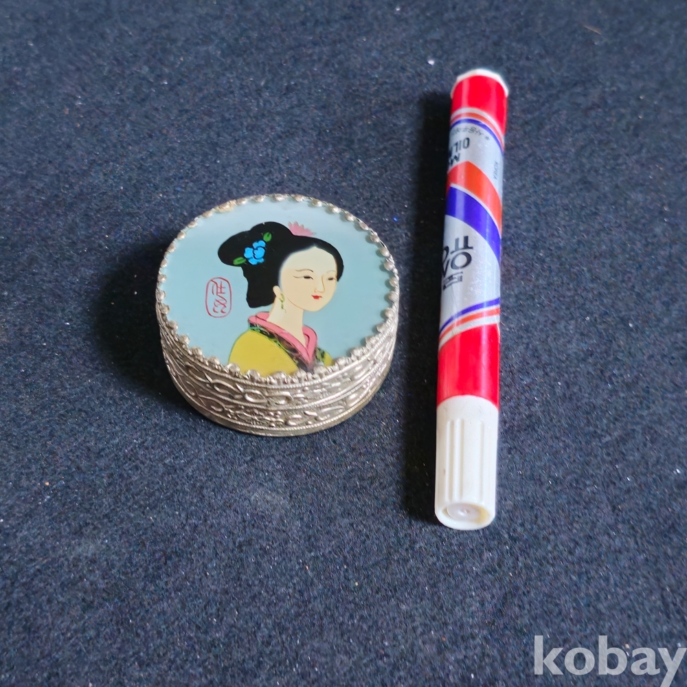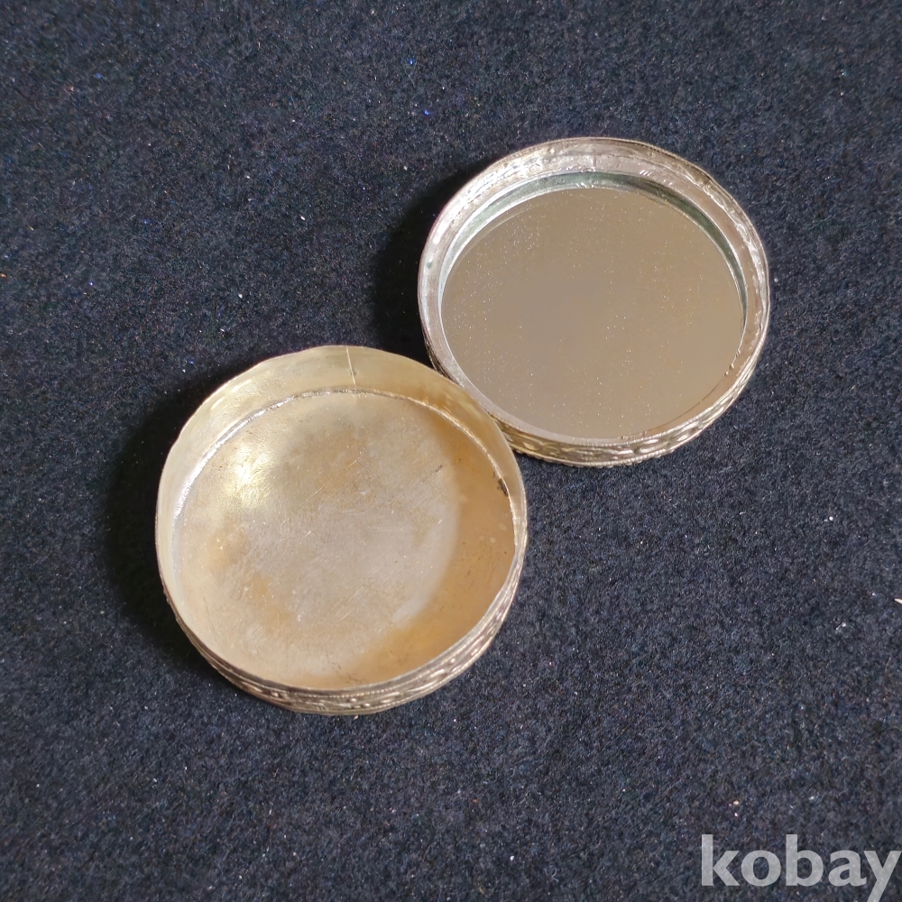 (((인테리어소품))) 오래전 Vintage Oriental Chiness White Metal Round Trinket Box (거울있는 금속 함)