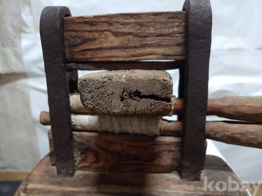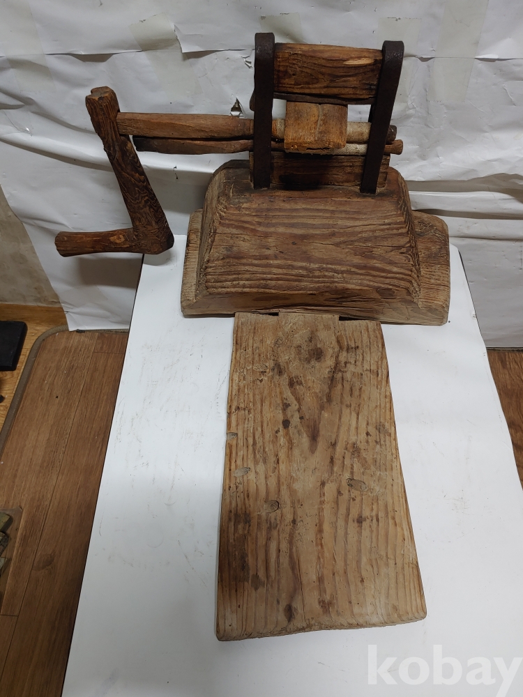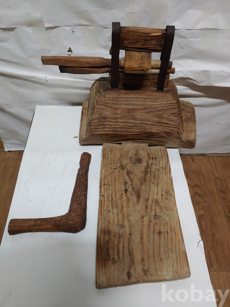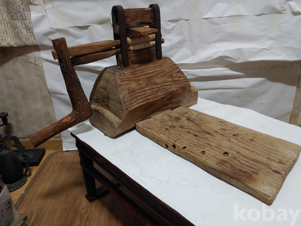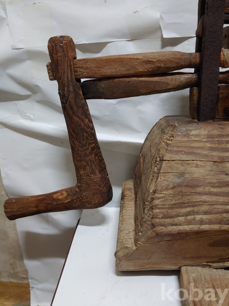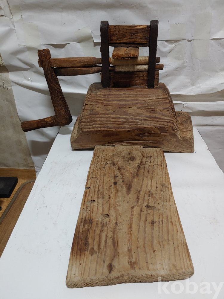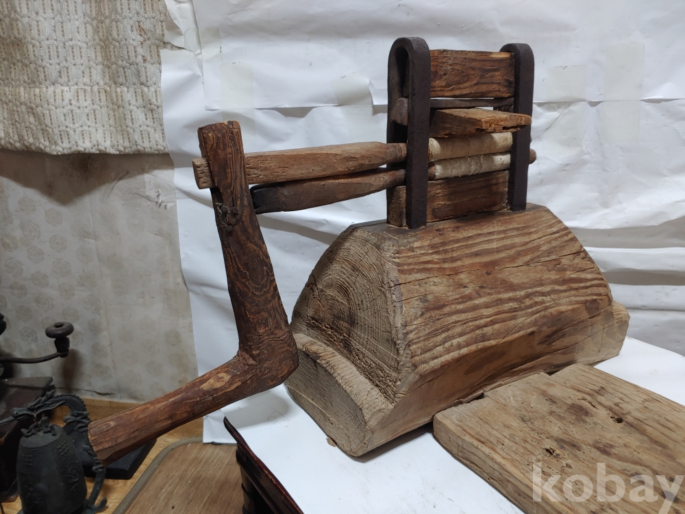 ""옛날 목화솜에서 목화 씨앗을 빼는 소나무 쐐기 씨아"