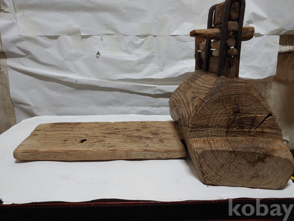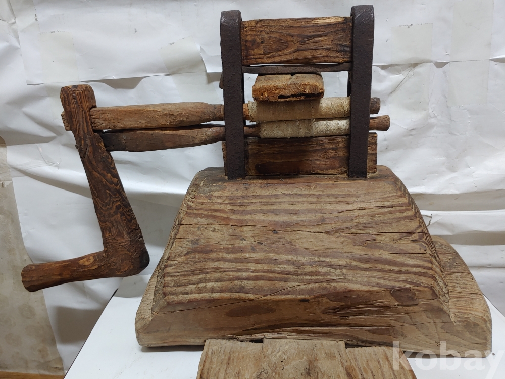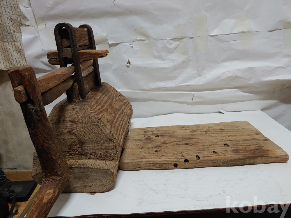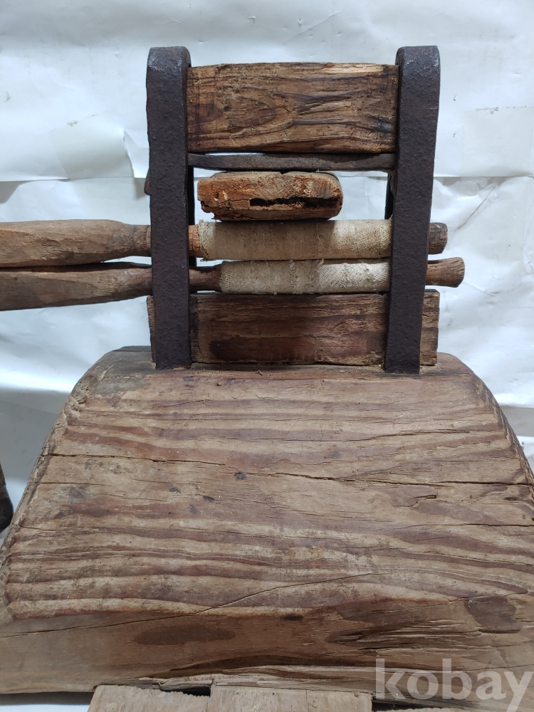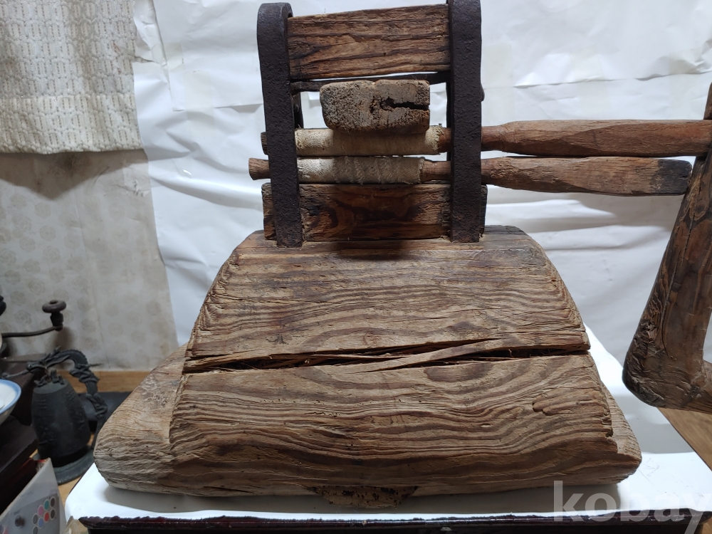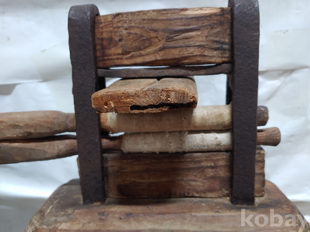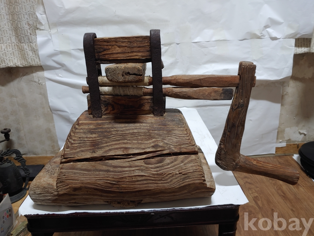 ""옛날 목화솜에서 목화 씨앗을 빼는 소나무 쐐기 씨아"