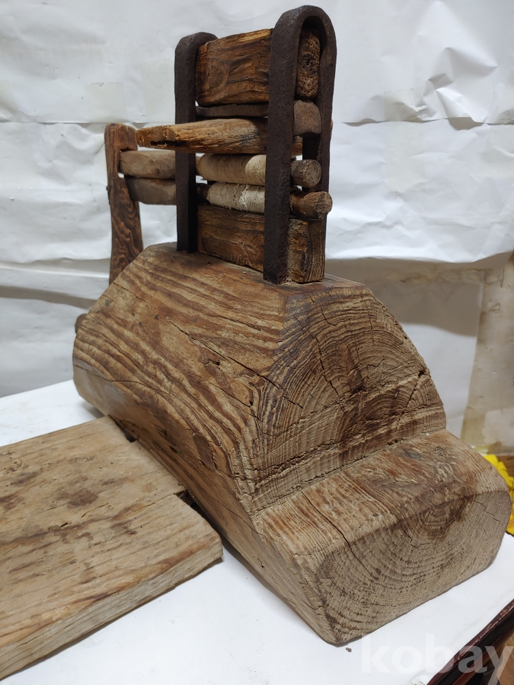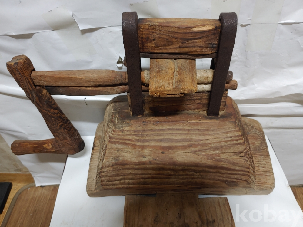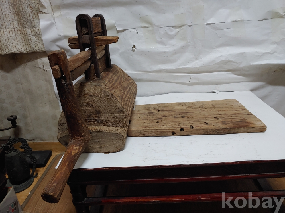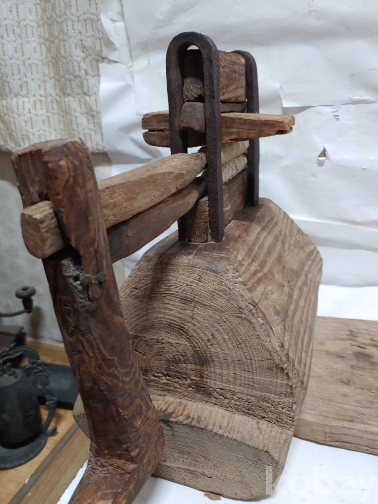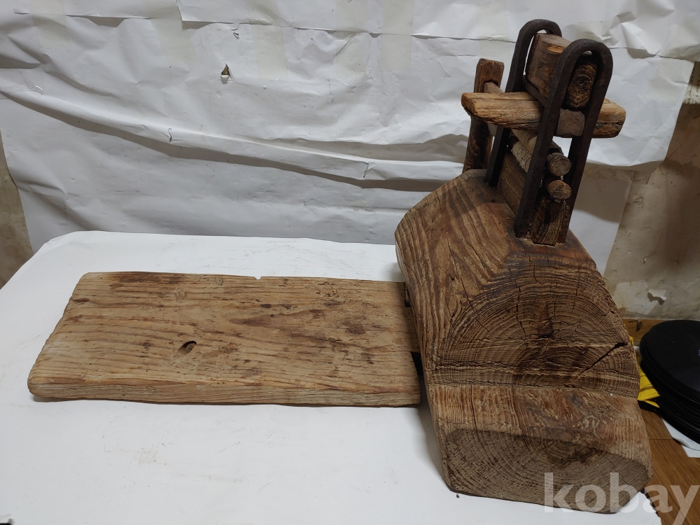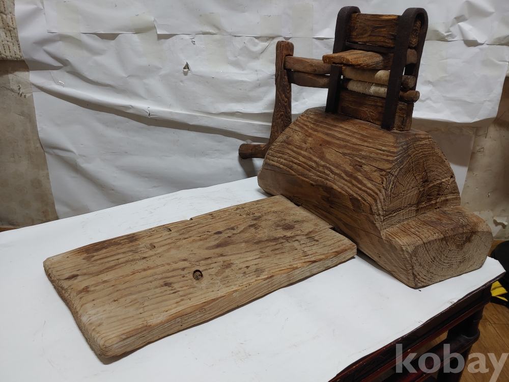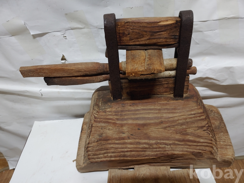 ""옛날 목화솜에서 목화 씨앗을 빼는 소나무 쐐기 씨아"