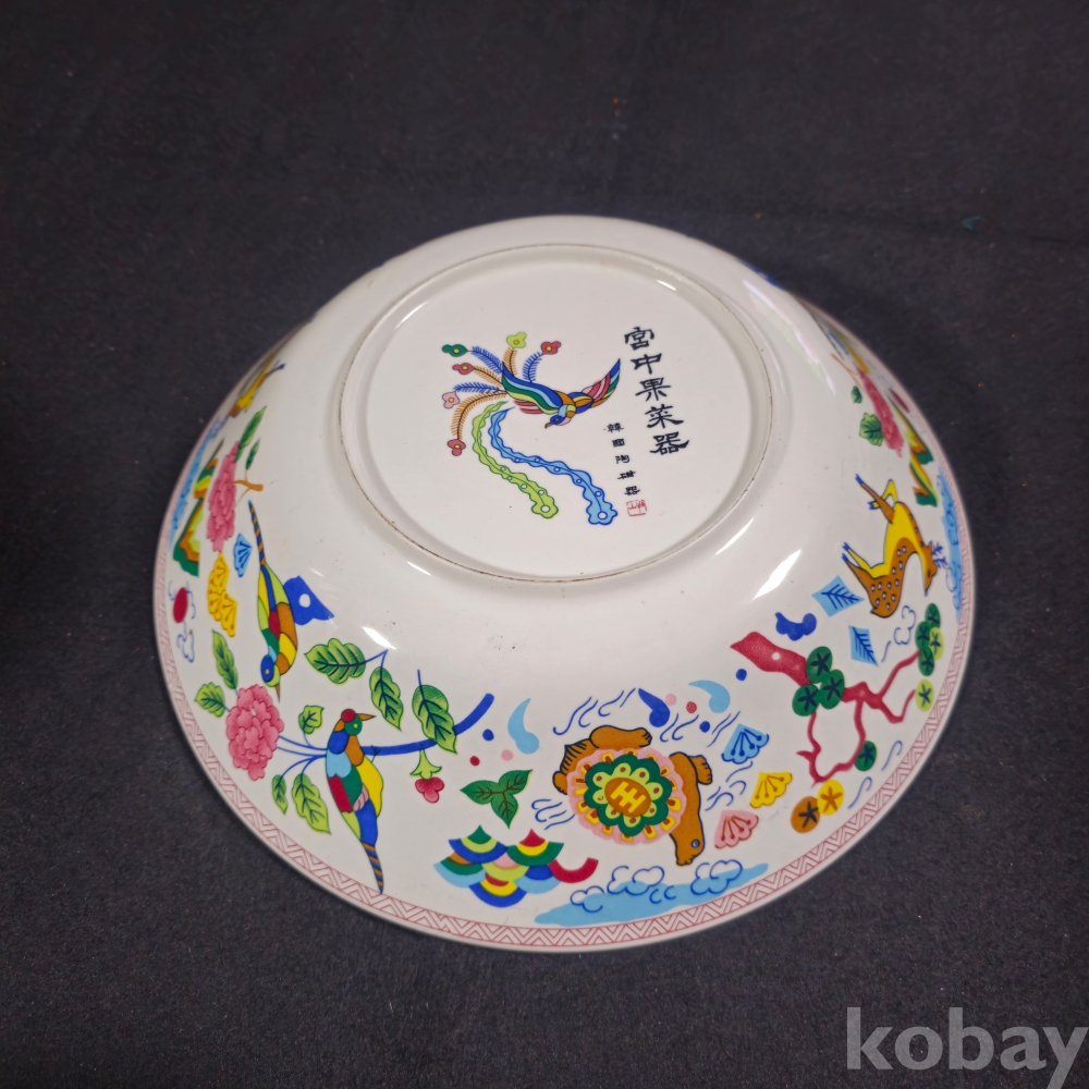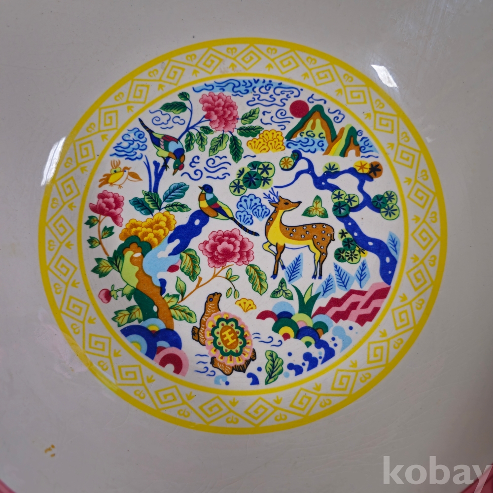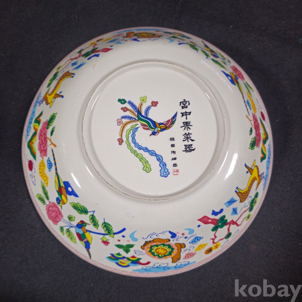 (((근현대사자료/도자기접시))) 오래전 韓國陶磁器에서만든 십장생그림 무게감있는 대형 果菜器