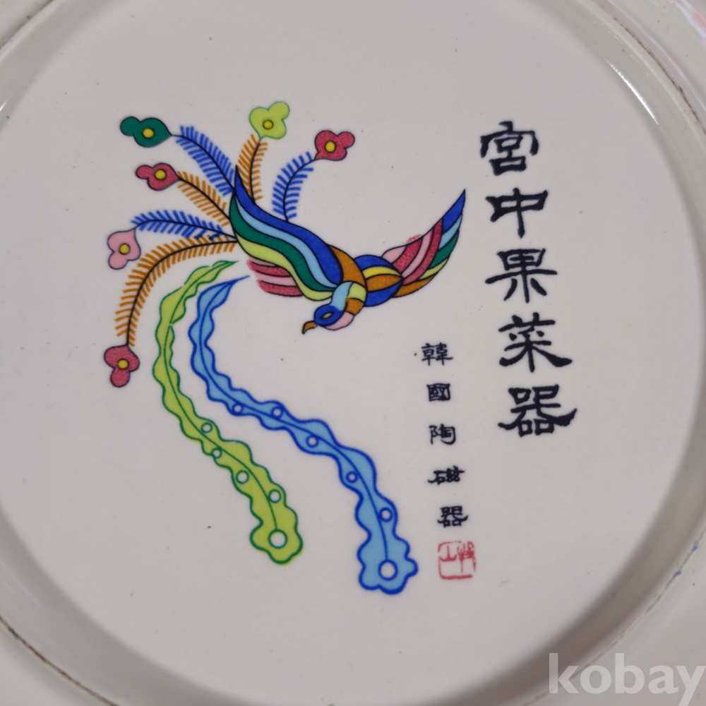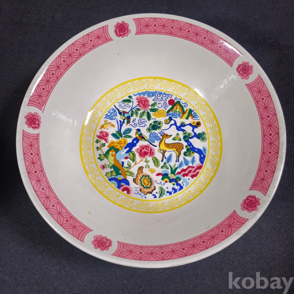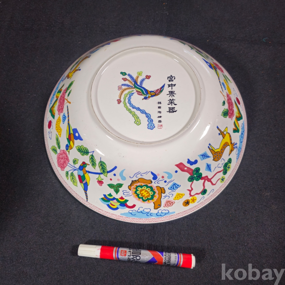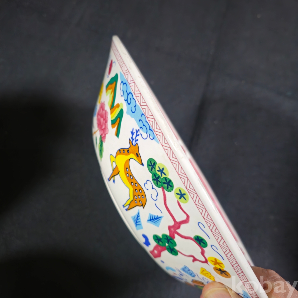 (((근현대사자료/도자기접시))) 오래전 韓國陶磁器에서만든 십장생그림 무게감있는 대형 果菜器