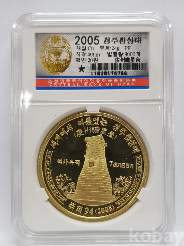 - 2005년(주체94) 경주첨성대 20원 프루프 인증 주화 - 세계에서 이름있는 경주 첨성대 역사유적