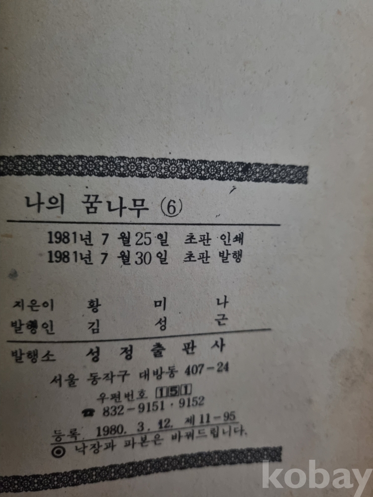 나의 꿈나무6 황미나 성정출판사 1981