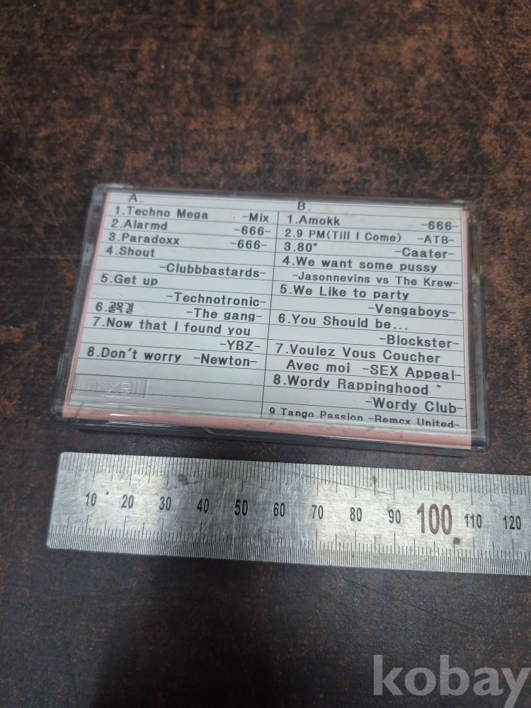 1980-90년대 가판대 불법 녹음 카세트 테이프 최신가요 5점과 테크노 댄스 카세트 테이프 내용 미확인 6점과 케이스 일괄 11*11*8