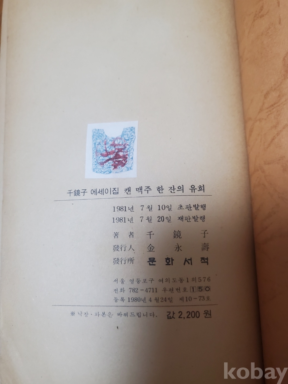1. 캔 맥주 한 잔의 유희, 천경자, 문화서적, 1981년, 345쪽, 상태 상, 사진 참조