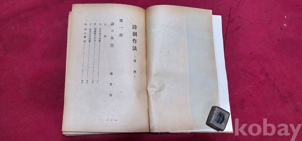 시 창작법 서정주 *박목월 *조지훈 * 공저 1955년 선문사 발행