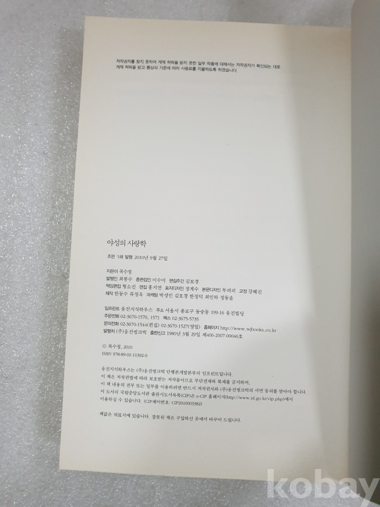 {천원경매}12-1105 야성의 사랑학 책(5권이상묶음배송불가)