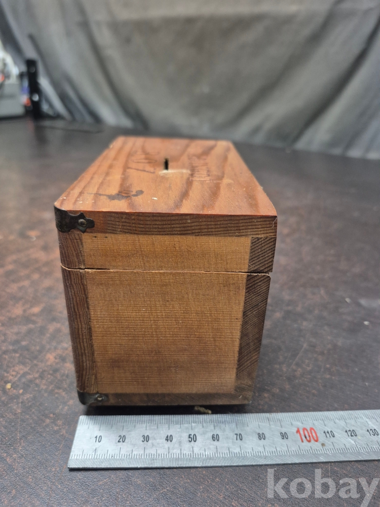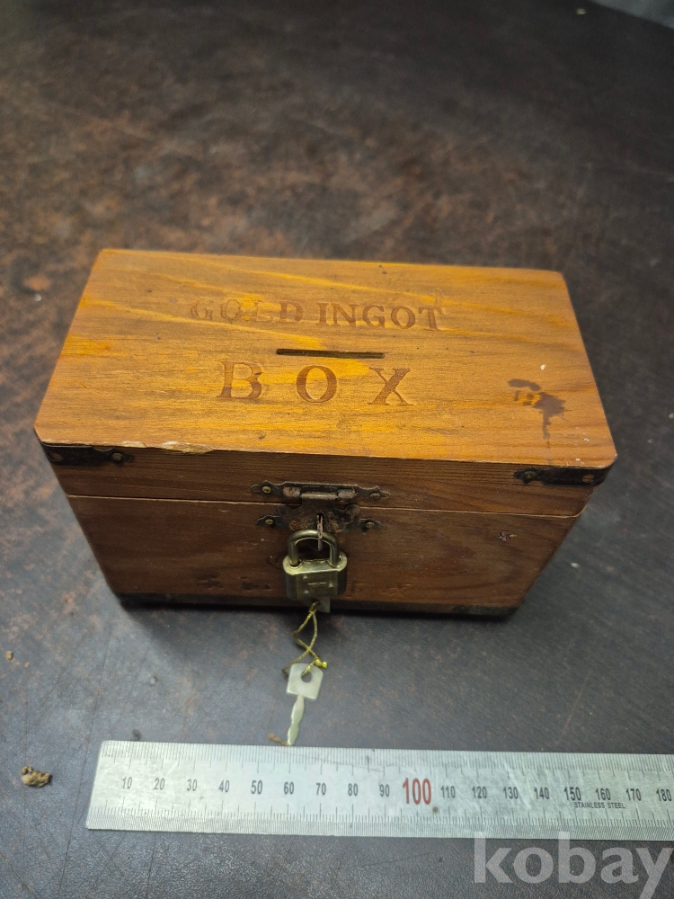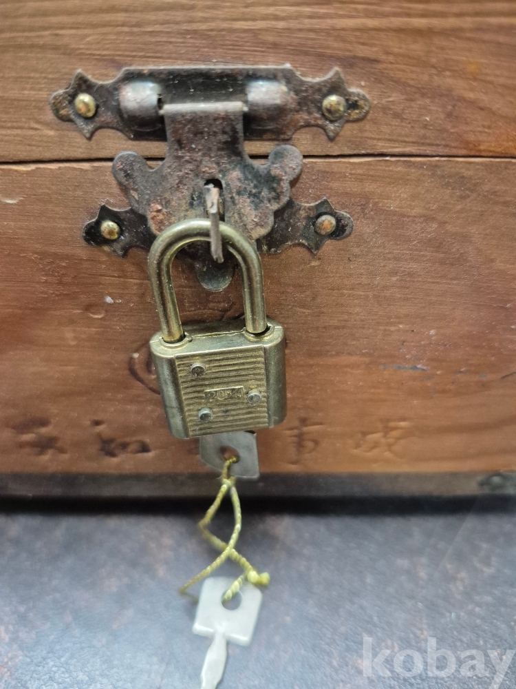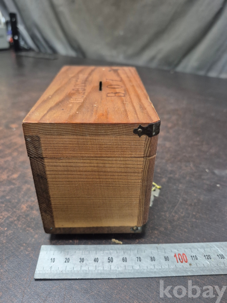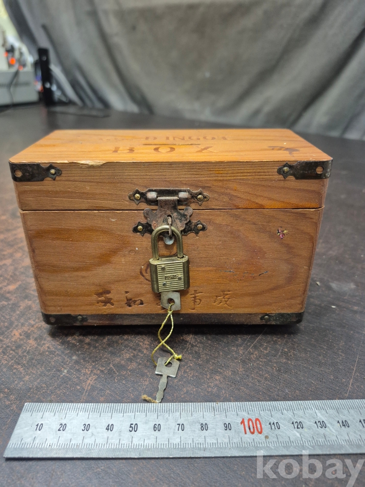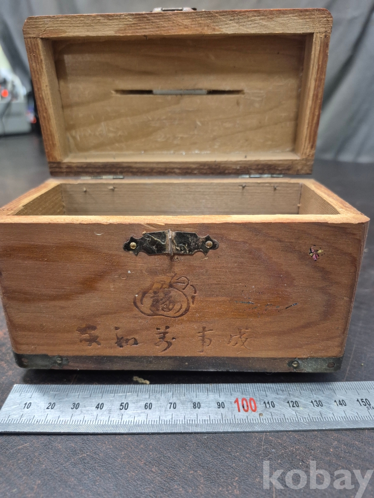 1980년대 원목으로 만든 소형 저금통 가화 만사성이라고 씌어져 있으며 열쇠 자물통 포함이에요 15*8*10