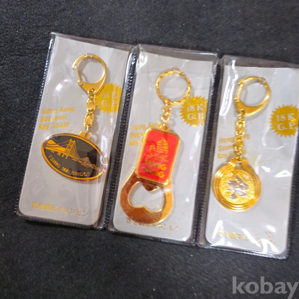 (관광기념품/열쇠고리/오프너))) 오래전 홍콩관광기념 금속 키홀더 3종 (미사용)