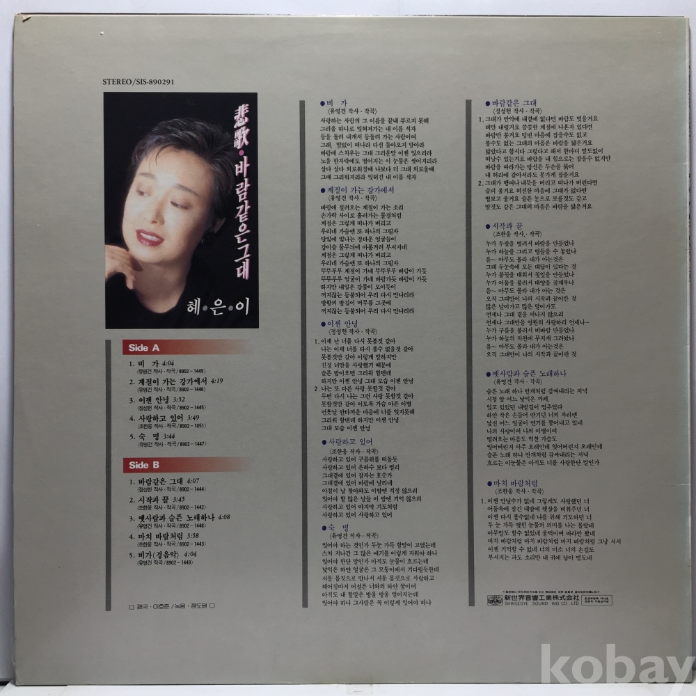 LP 82,400-58 혜은이 - 비가/ 바람같은 그대 자켓 EX+ 알판 EX+ EX 89 년 국내반
