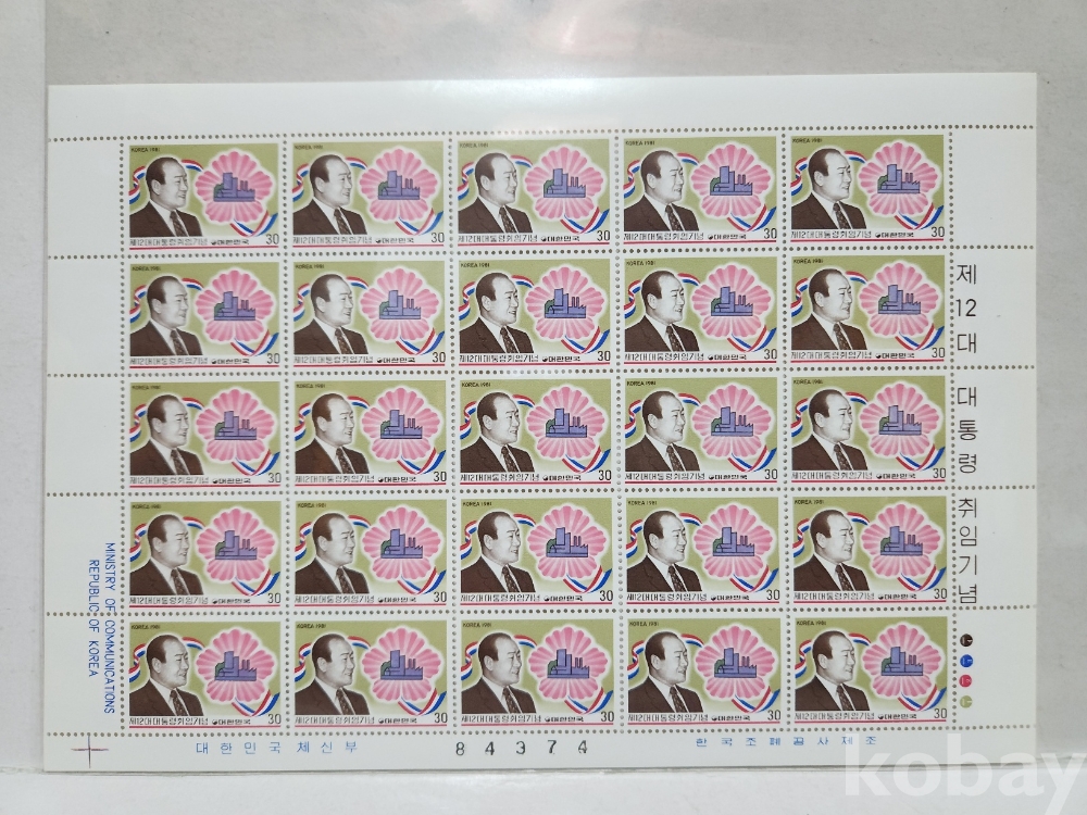 -대한민국 제 12대 대통령 취임기념 우표 전지 입니다.
