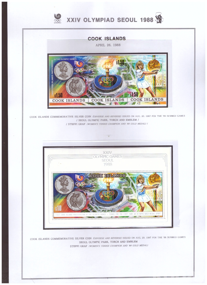 1) Cook Islands commemorative coin / Seoul Olympic Park and torch / Steffi Graf, women's tennis champion