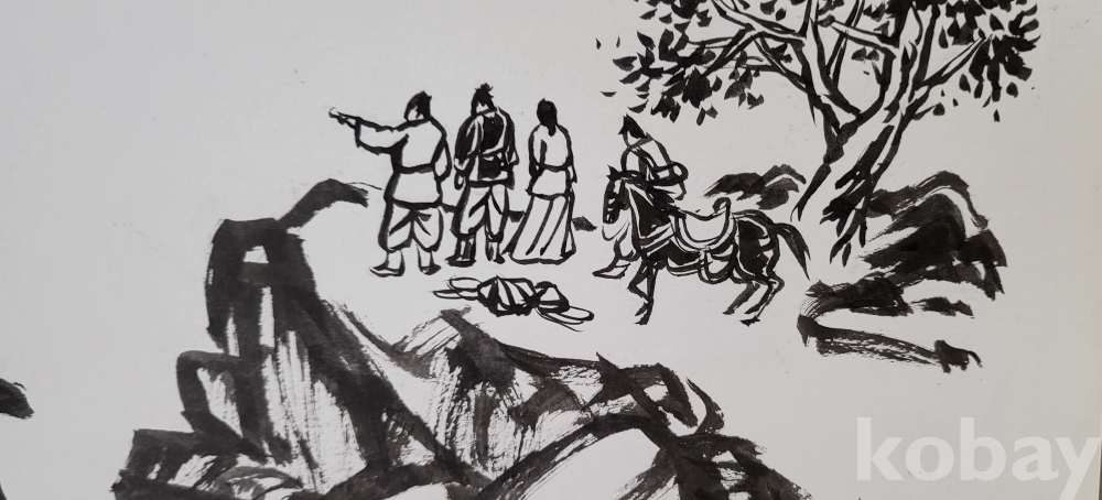 물과 먹으로 만 직접 그려진 수묵화 삽화로 매우 좋습니다,