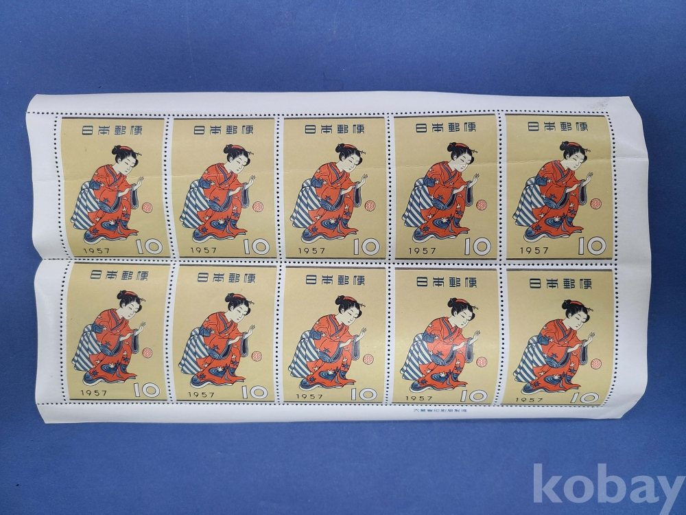[일본] 1957.11.1. 切手趣味週間 전지/상부 주름