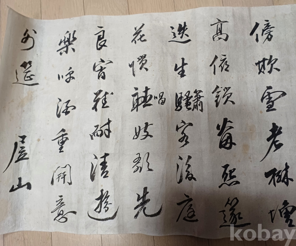 상태 ㅡ 거산의 호가 두군데 있어 시문이 두작품인가 봅니다 장지이지만 미사용이라 깨끗 함니다 작가는 누구인지 모르며 시문으로 보여집니다 깔끔하게 잘쓴 명필 입니다