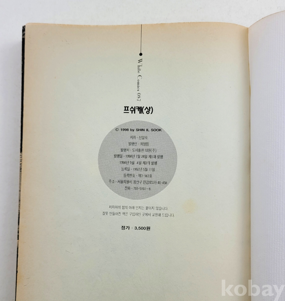 물 품 명 | 신일숙 / 프쉬케 (상,하)완결 총2권 / 1998년 / 도서출판 대원 |