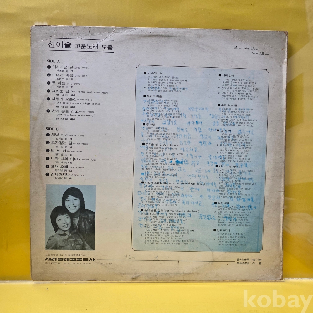 상품 설명 | Side A 1. 이사가던 날 2. 보내는 마음 3. 두 마음 4. 그리운 님 5. 사랑의 오솔길 6. 손에 손을 잡고 Side B 1. 새벽 안개 2. 혼자 걷는 길 3. 밤비야 4. 너와 나의 이야기 5. 오래 오래 6. 언제까지나 |