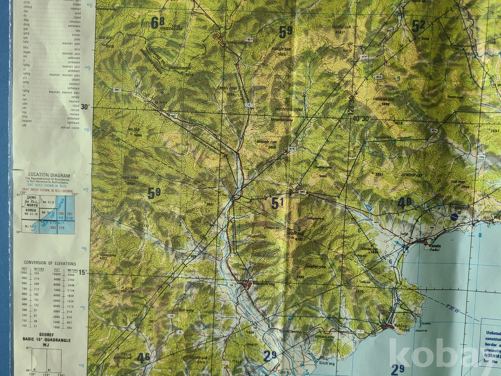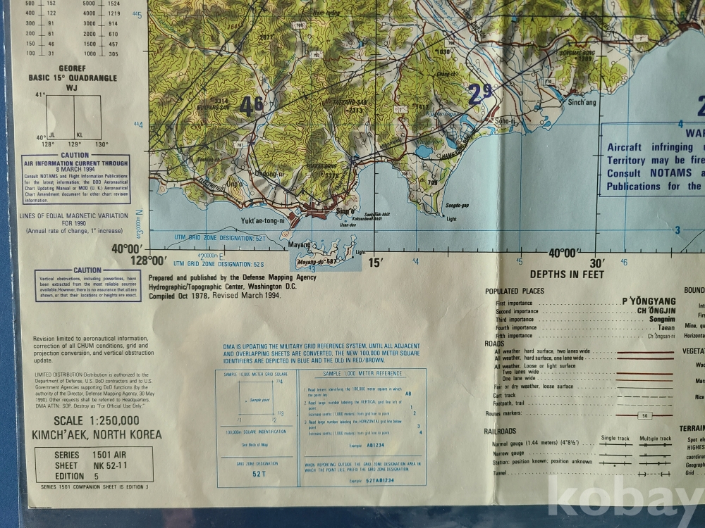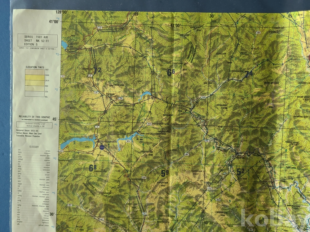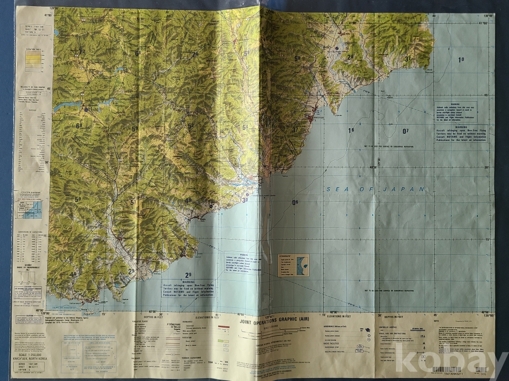 ▶ 1990년대 미국에서 제작한 군사용지도/북한 함경남도 지역/축척 1;250,000