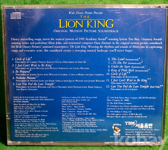 (CD) 라이온 킹 OST - Circle of life / I just can't wait to be king...
