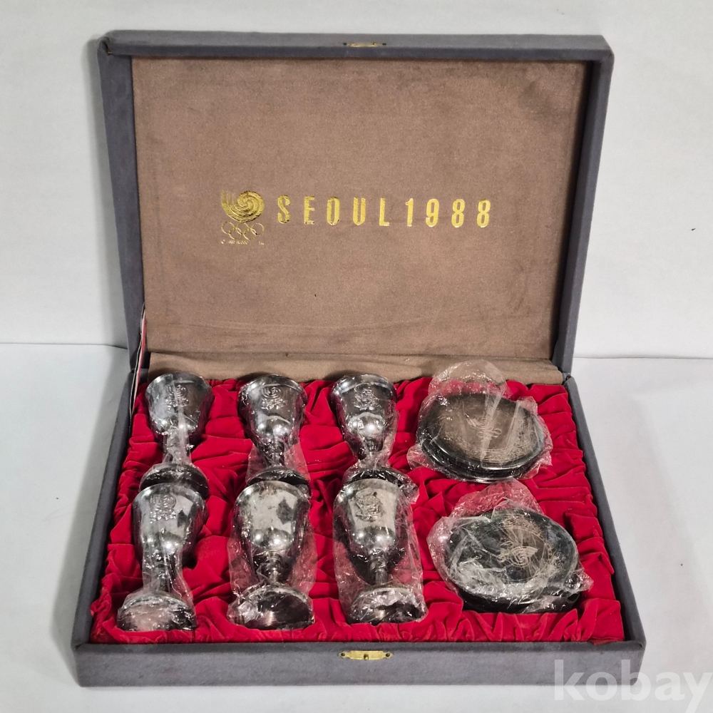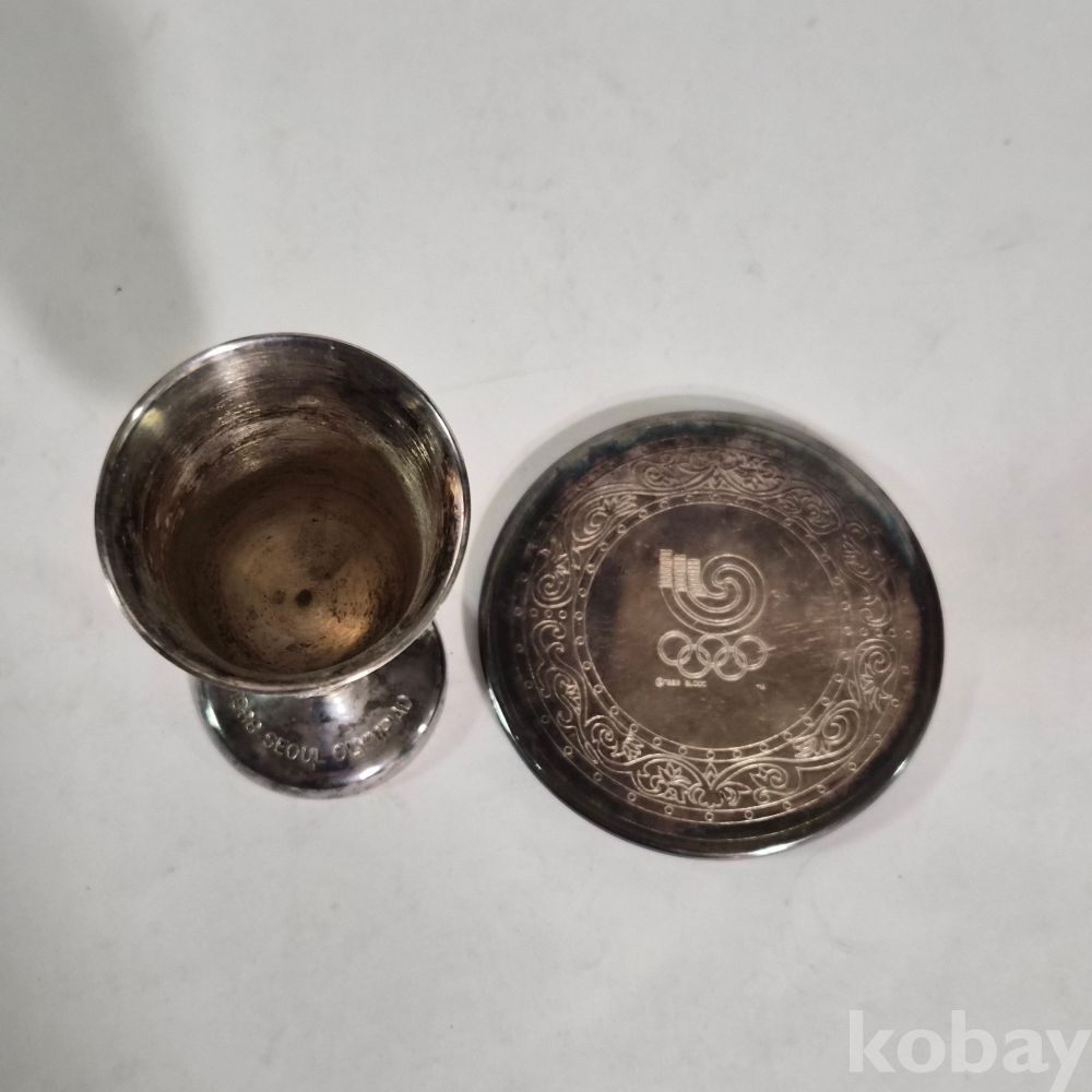 [희귀 근대사 자료] / 88 서울올림픽 호돌이 은도금 양주잔과 잔받침 세트