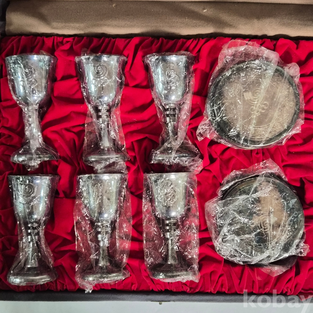 88 서울올림픽 호돌이 은도금 양주잔과 잔받침 세트 이며