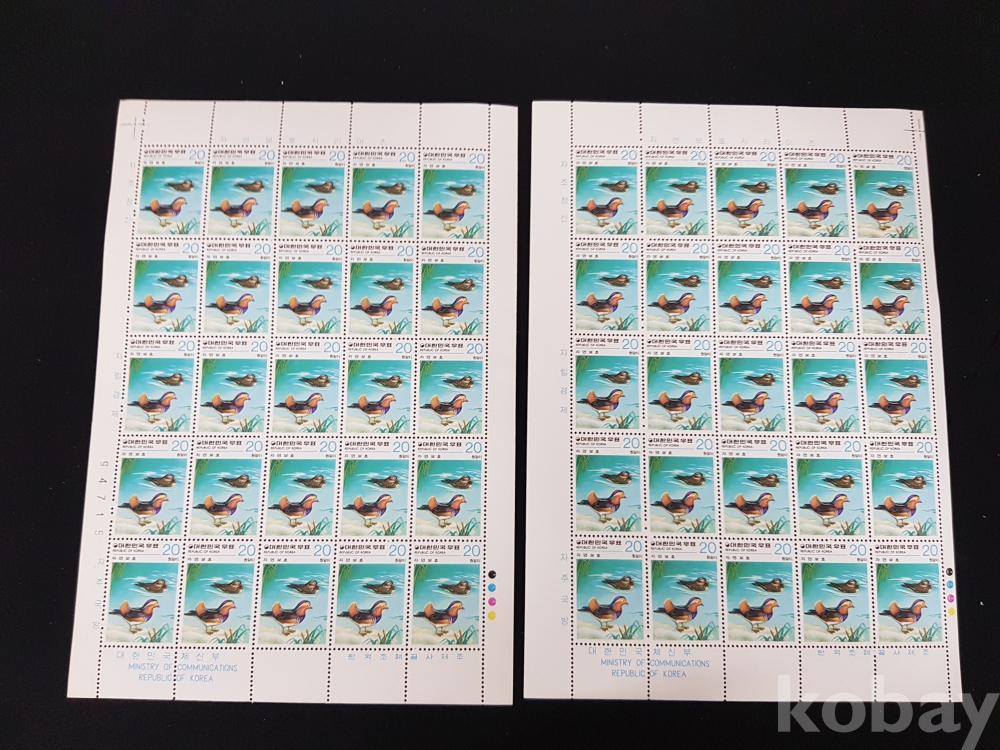 - 미사용 1979년 자연보호 시리즈 제 2집 원앙이 전지 2매 일괄
