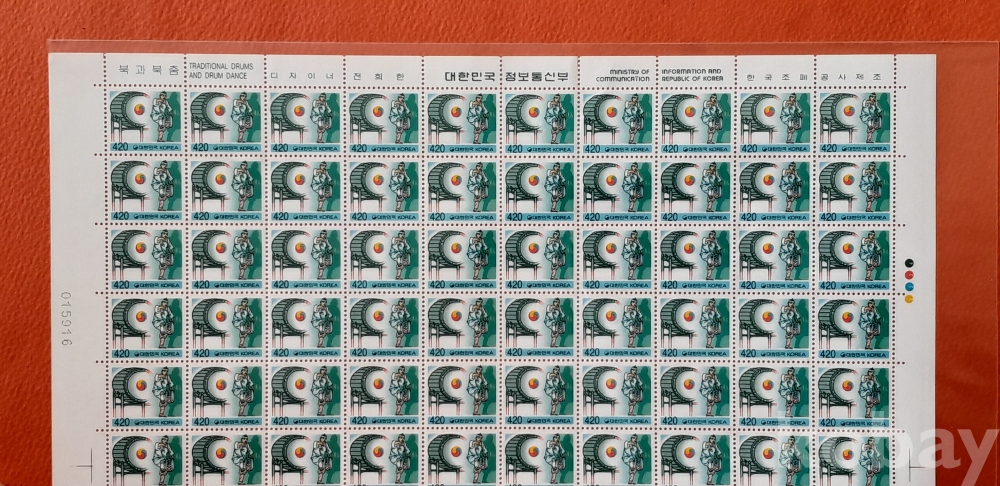 1995년 기본료 150원 시기 420원 북과 북춤 100매 전지 입니다.