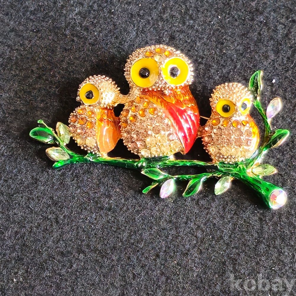 (((브롯치/뺏지))) 나무에 앉아있는 부엉이 3마리 브롯치