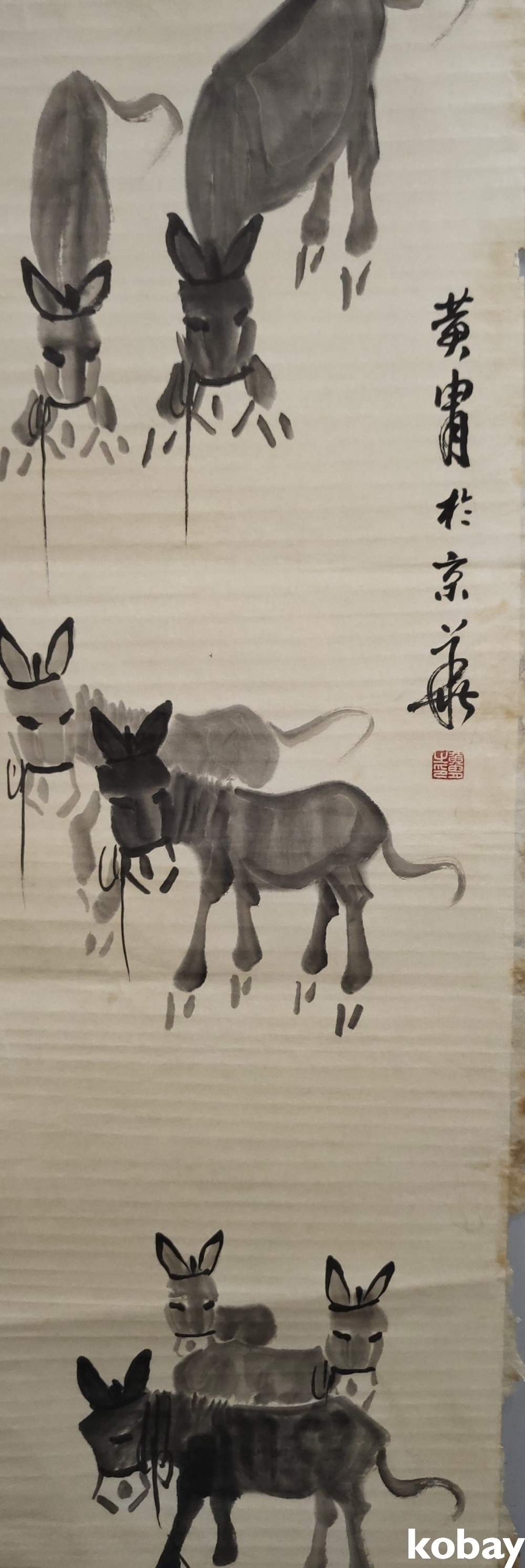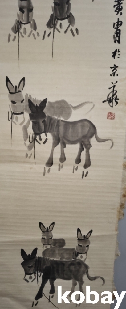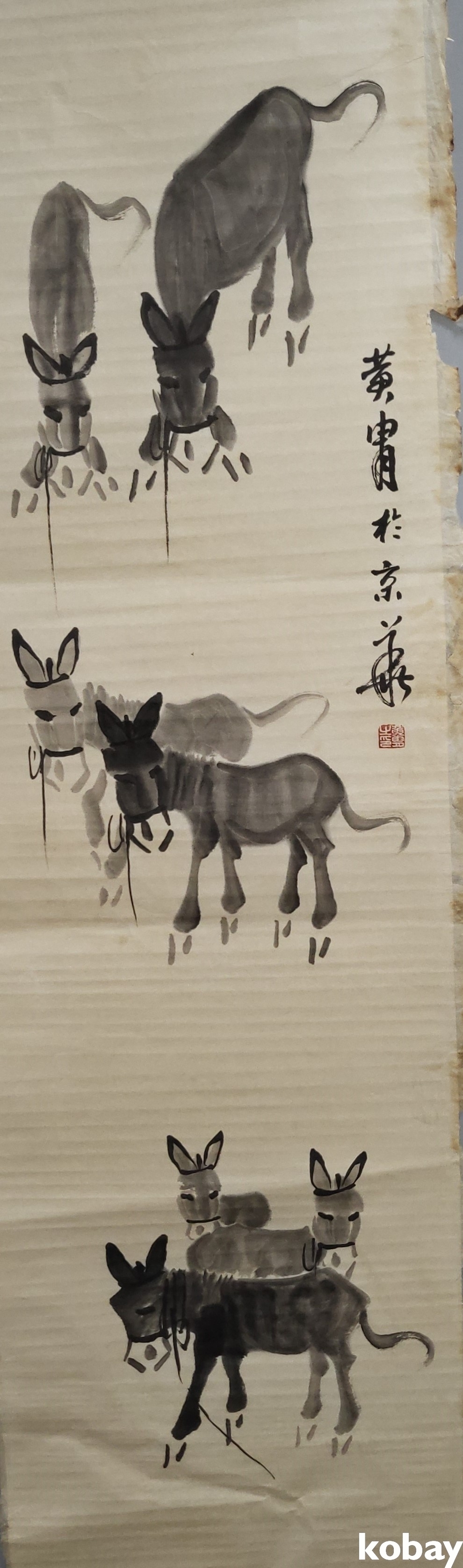 중국 유명 화가 황주 낙관 보이는 당나귀 그림 종이에 채색한 수묵화입니다,