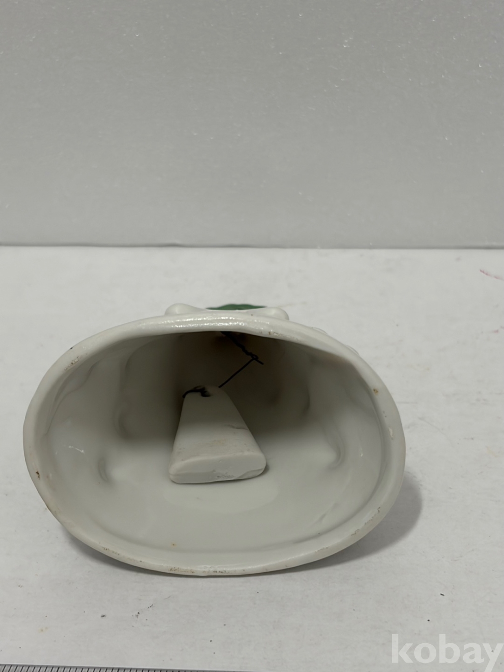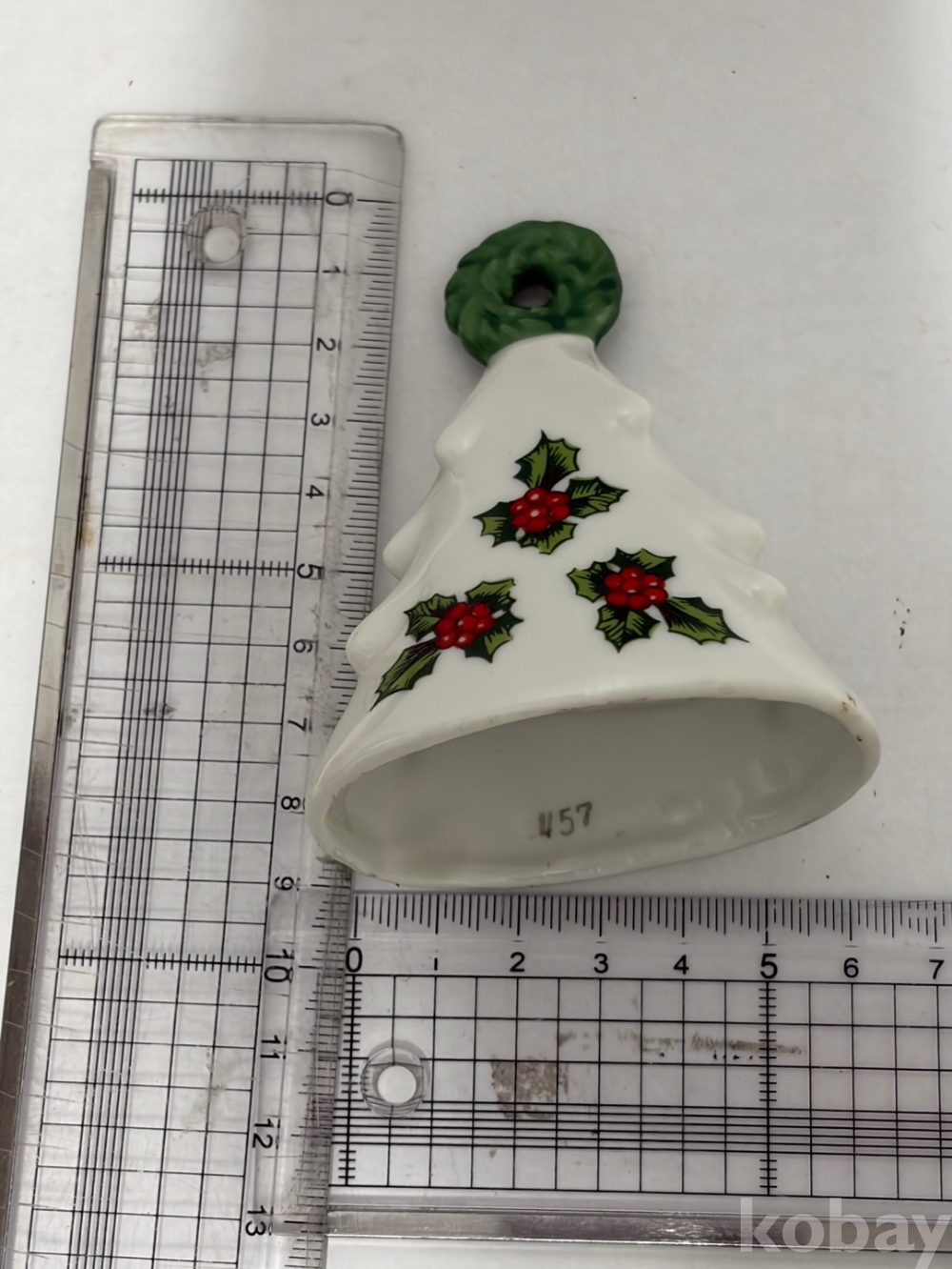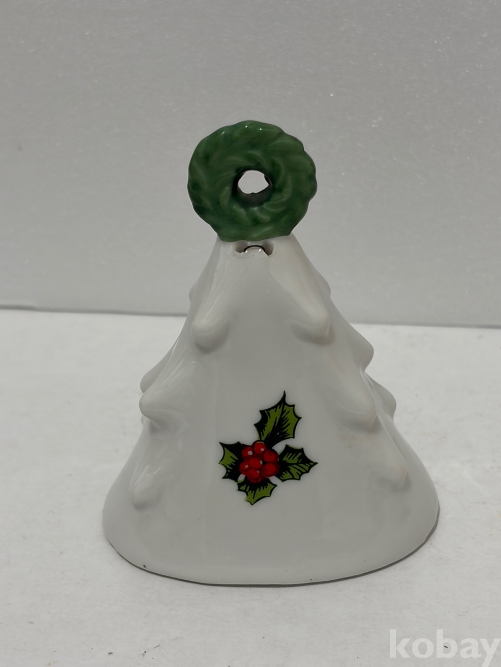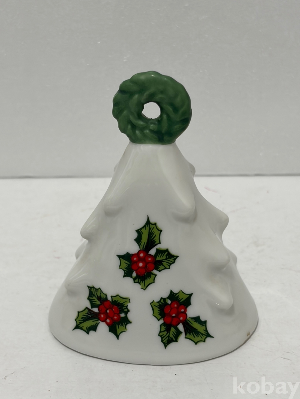 홀리(서양 호랑가시나무) 잎과 붉은 열매 장식이 있는 도자기 종입니다.