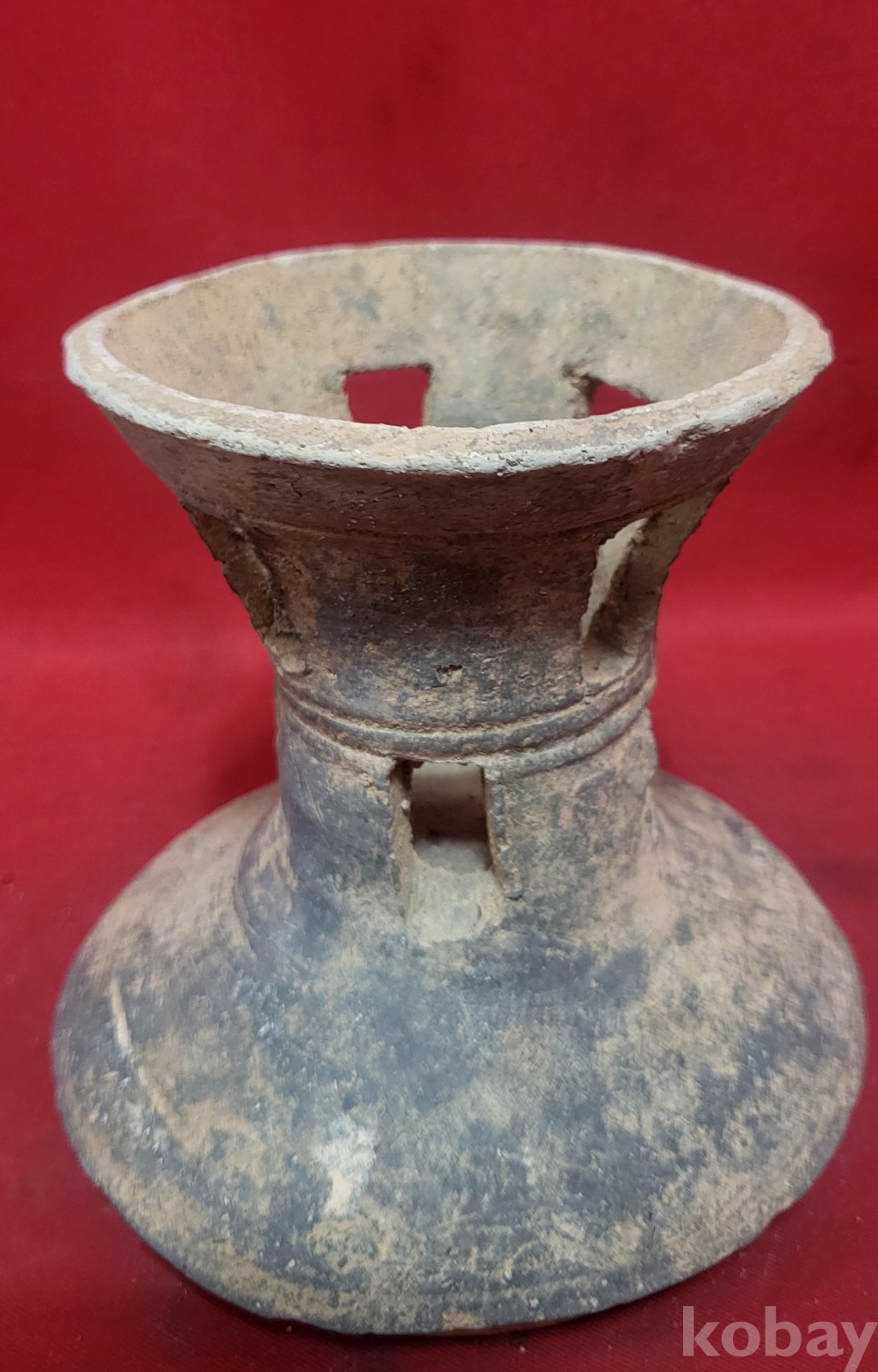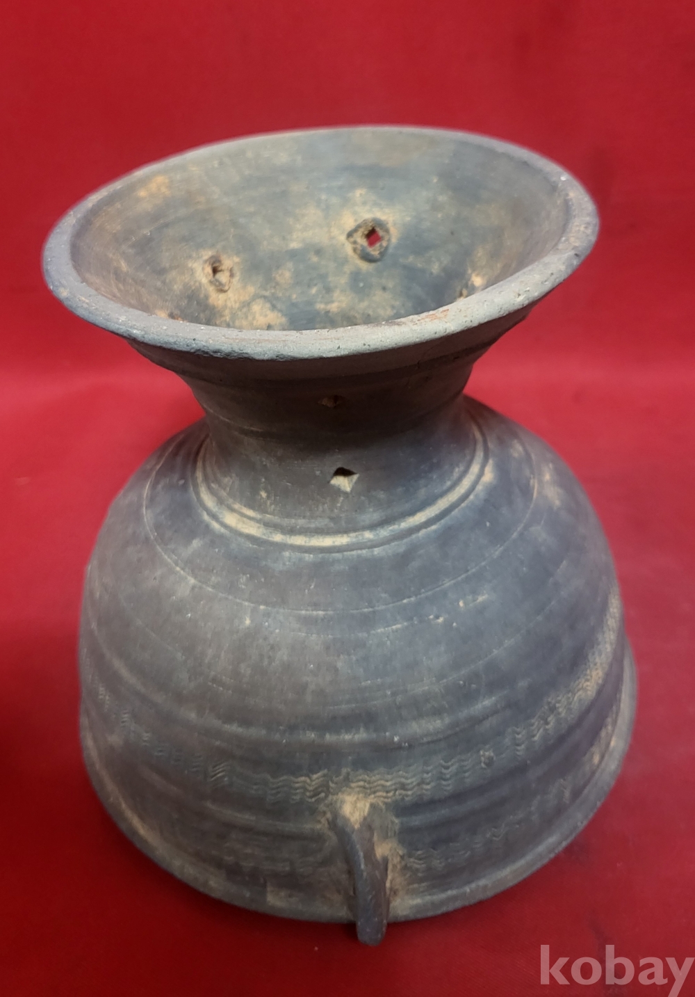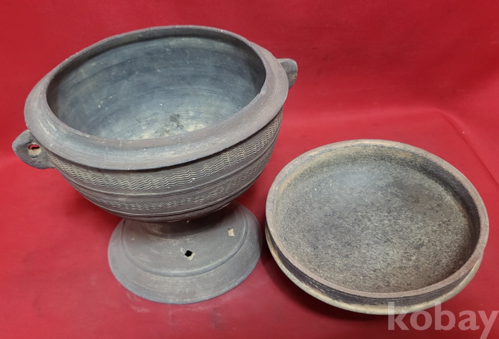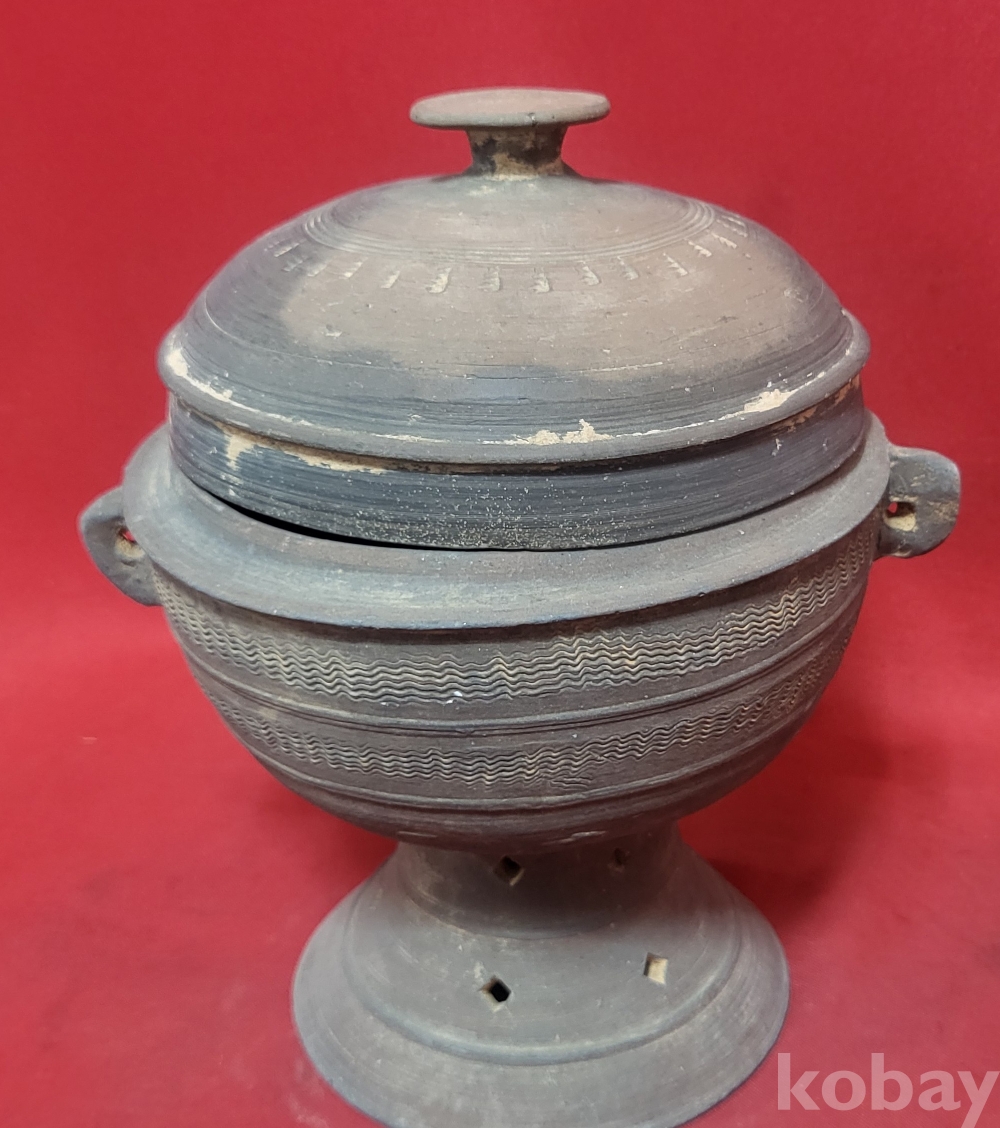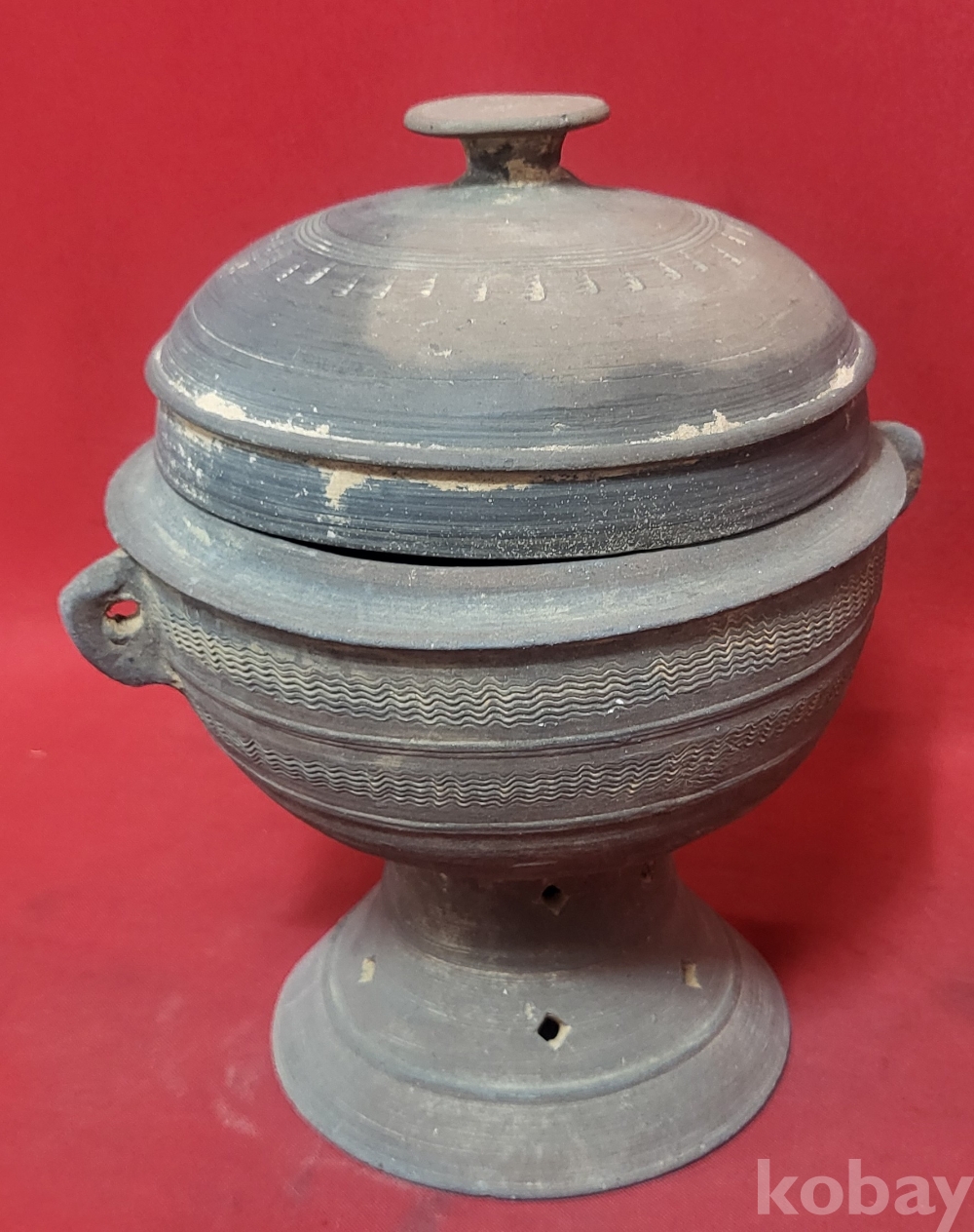 신라토기 굽다리 선각문(線刻紋) 양귀 달린 유개호입니다,
