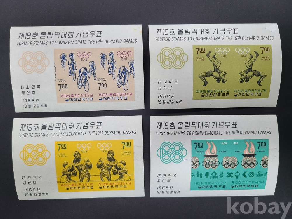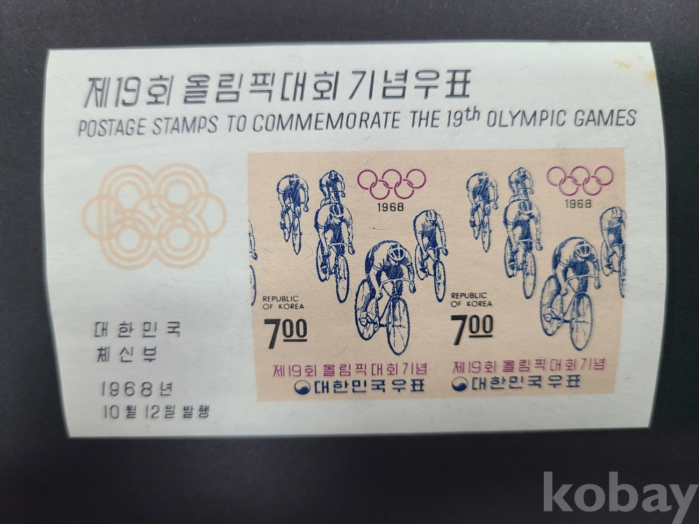 1968년 19회 올림픽대회 s/s 1세트/1매는 후면얼룩,후면 연필글씨 있음