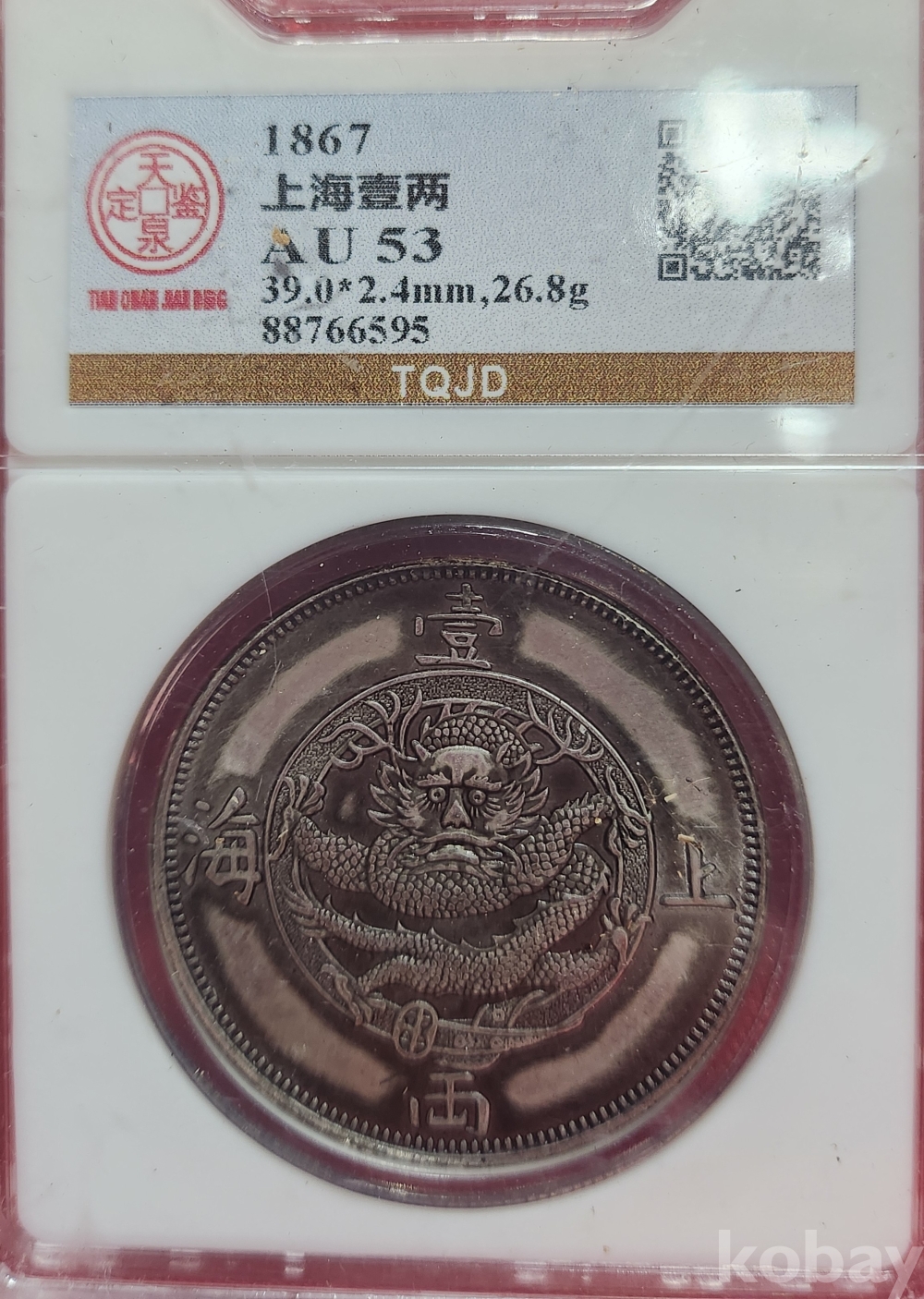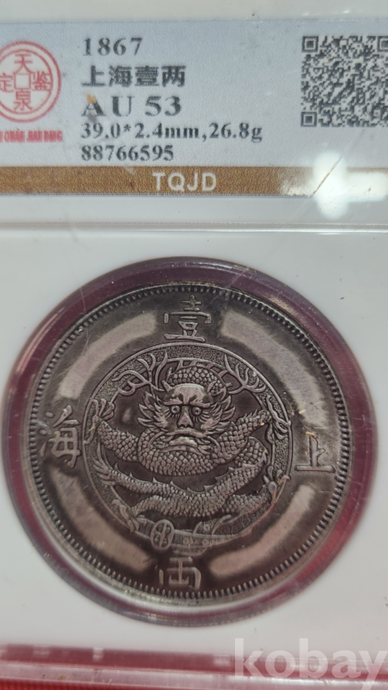 1867 년 큐알코드(QR CODE)가 함께하는 은색  상해일량  화패로 밀봉된 상태입니다,