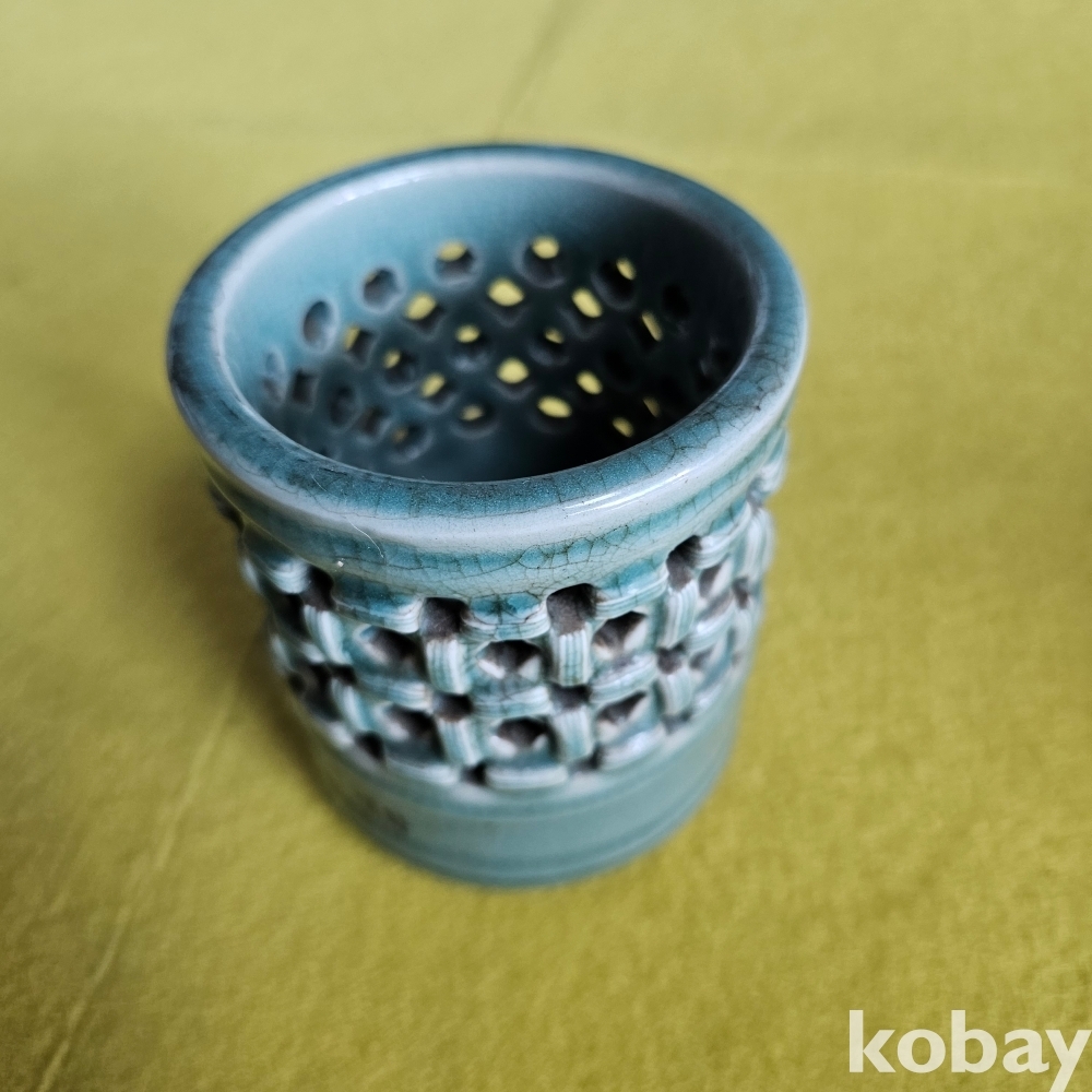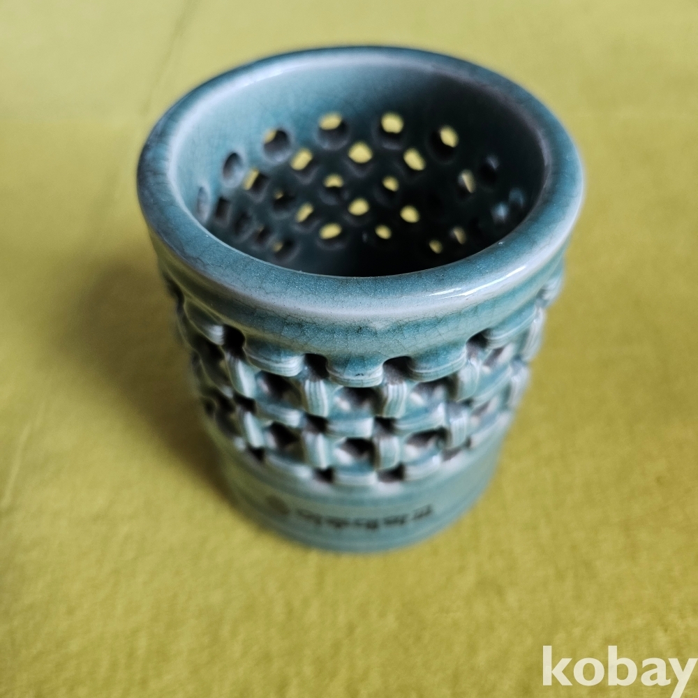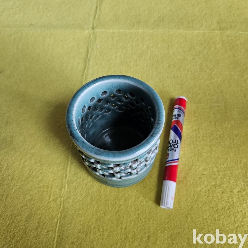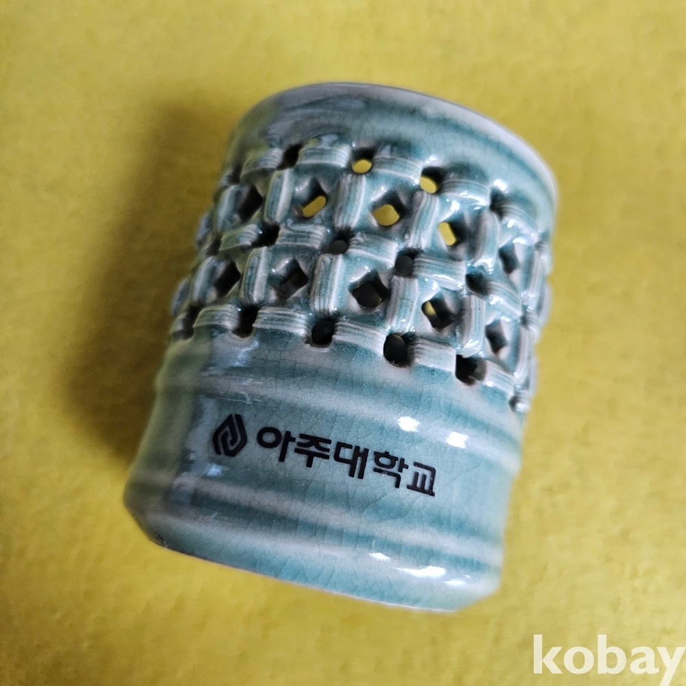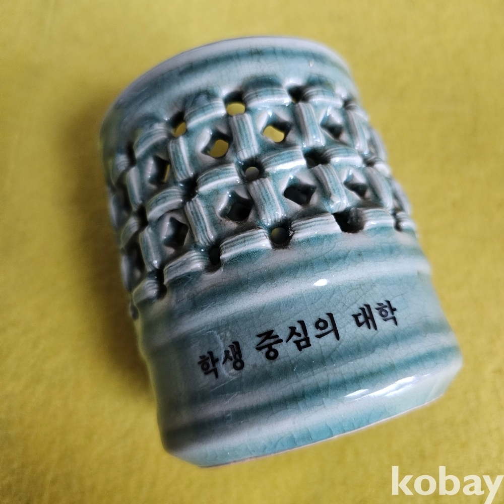 (((도자기붓통/필통))) 오래전 학생중심의 대학 아주대학교 투각 도자기 붓통 (필통)