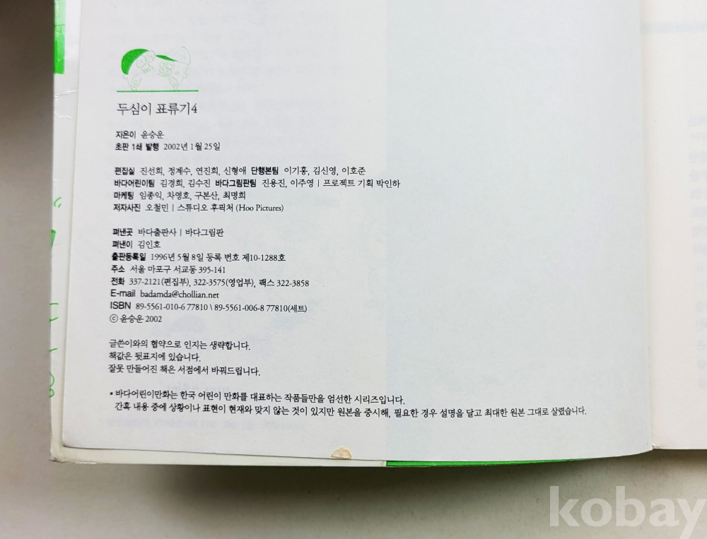 물 품 명 | 윤승운 / 두심이 표류기(4) / 바다어린이만화 / 2002년 초판 / 바다출판사, 바다그림판 |